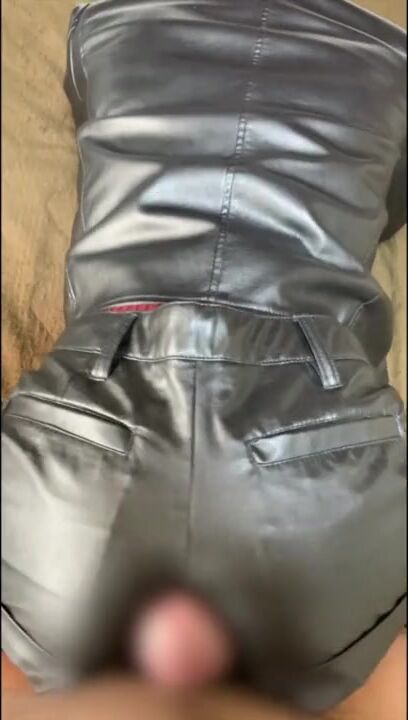 レザーショートパンツ着衣挿入 ぶっかけ
