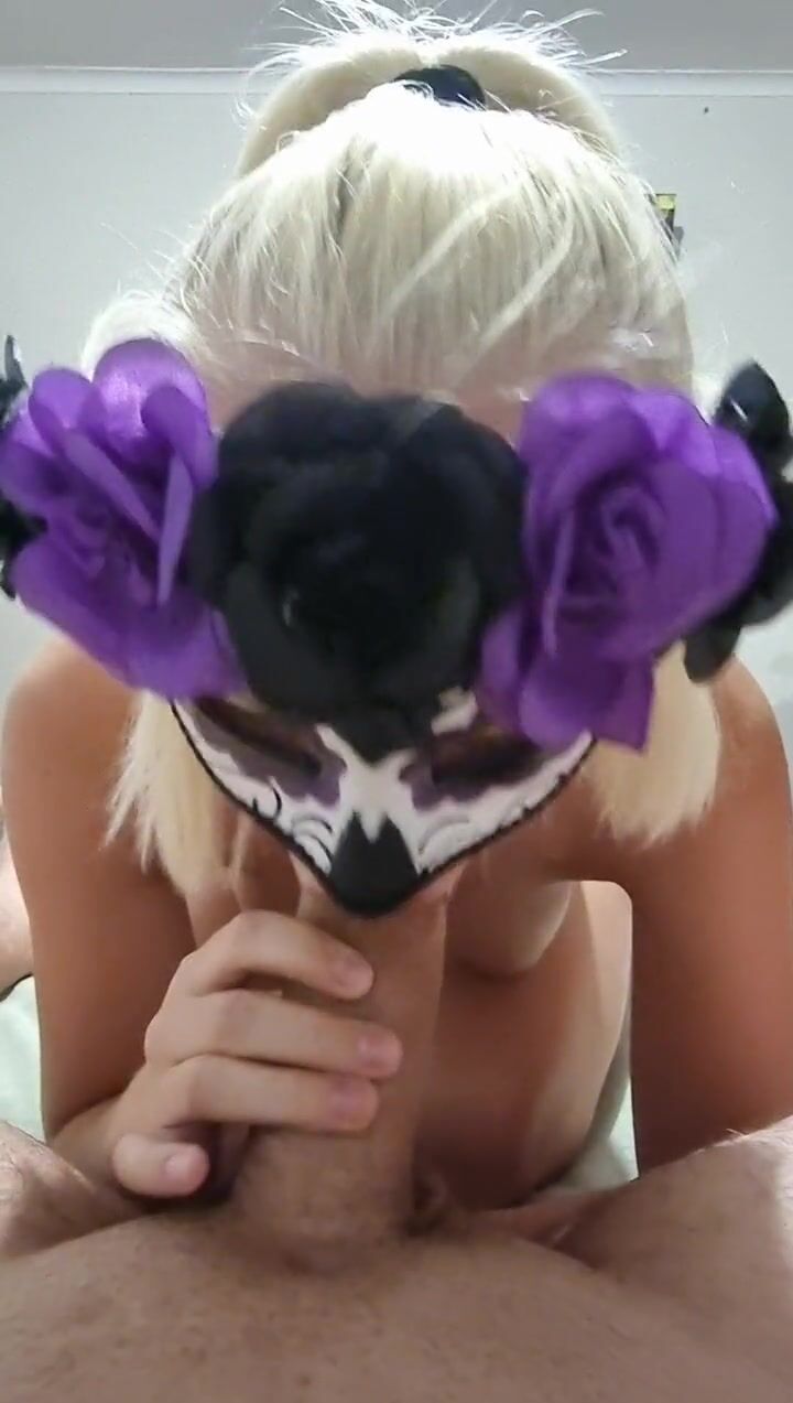 Amazing blowjob from my shy masked stepsister