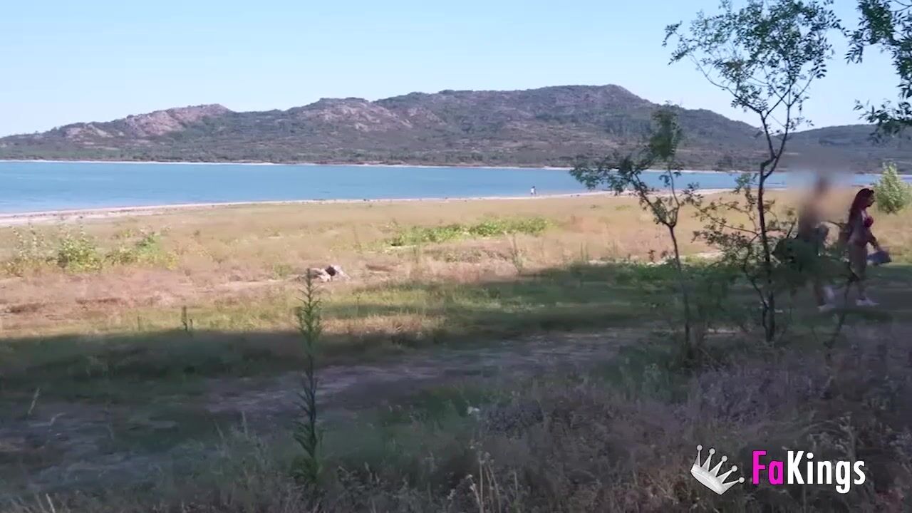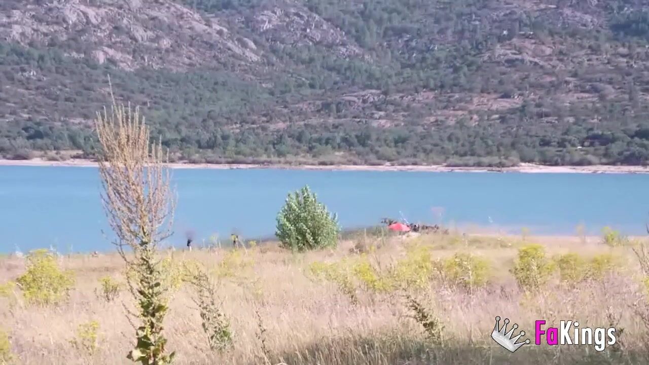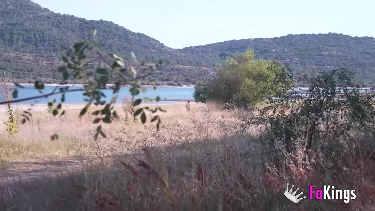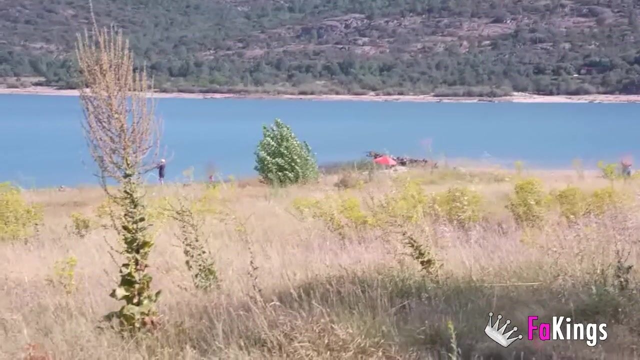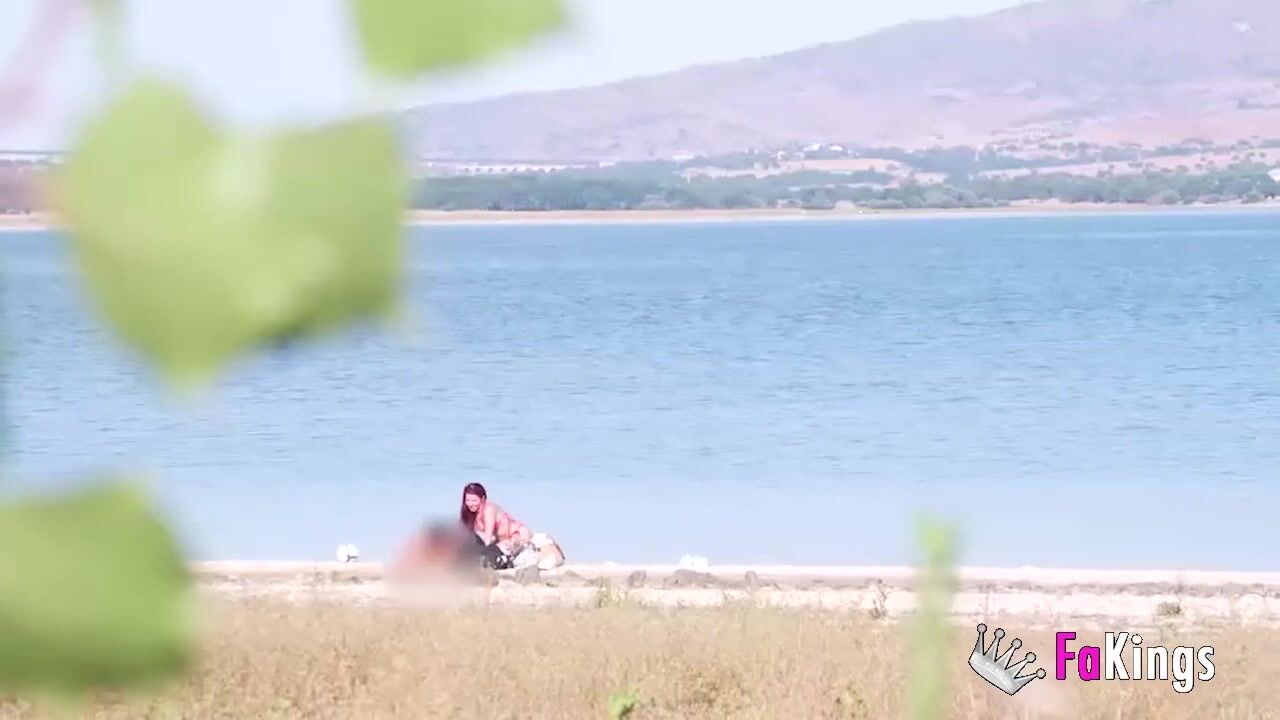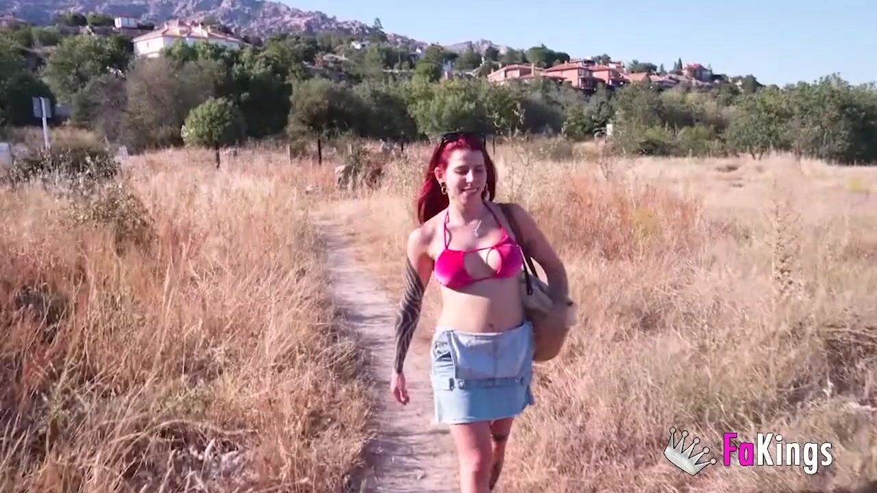 Amazing redhead Sofia Santana wants to bang random guys next to the lake!