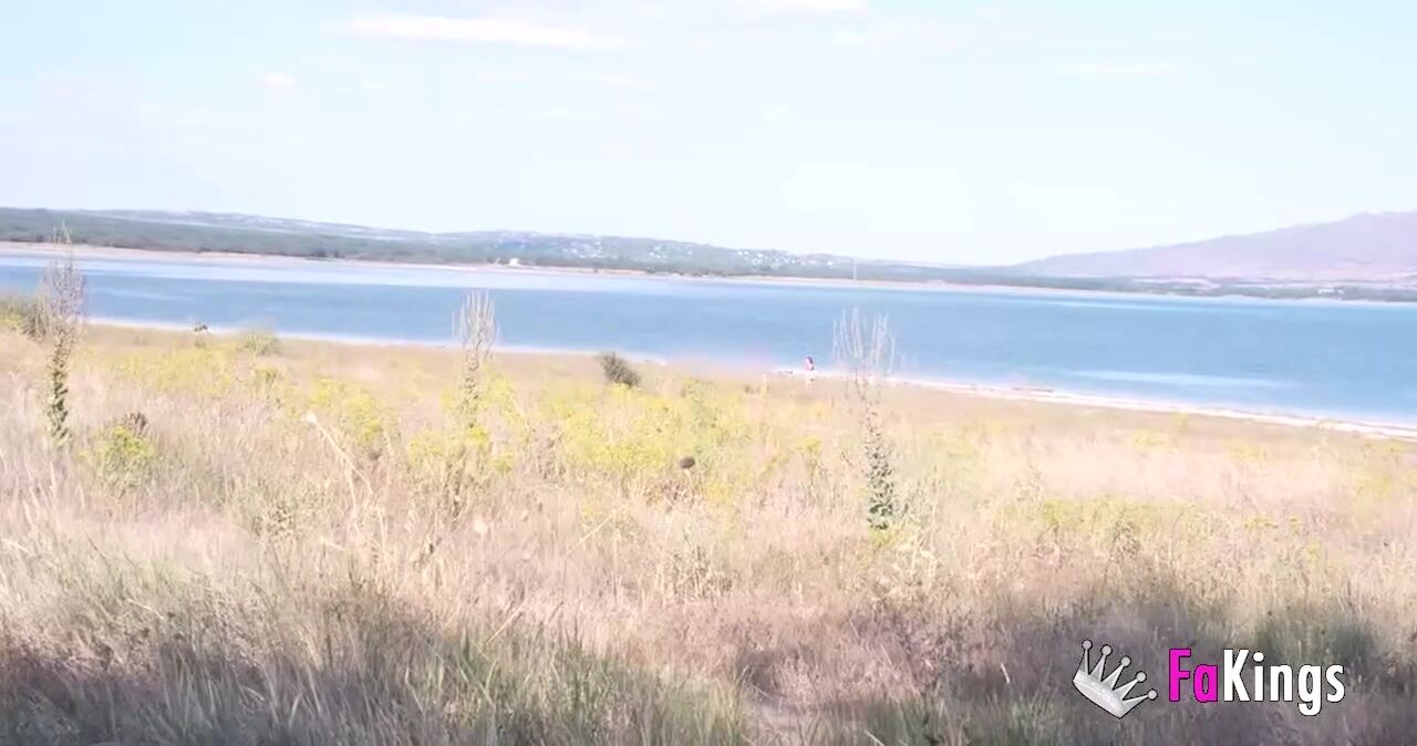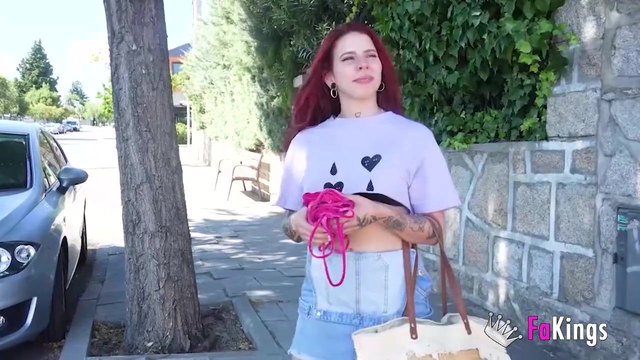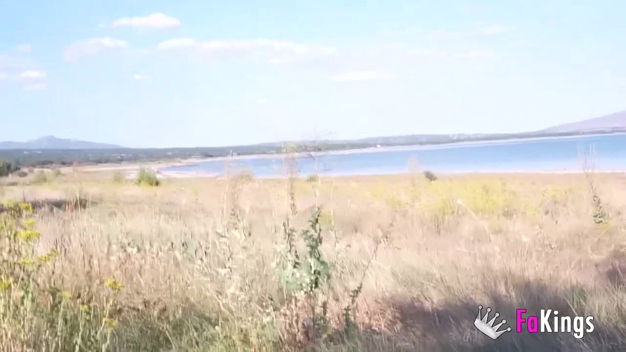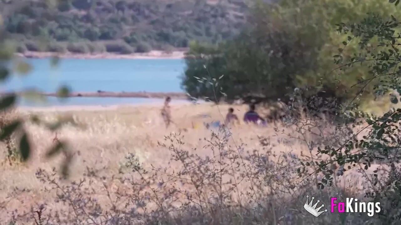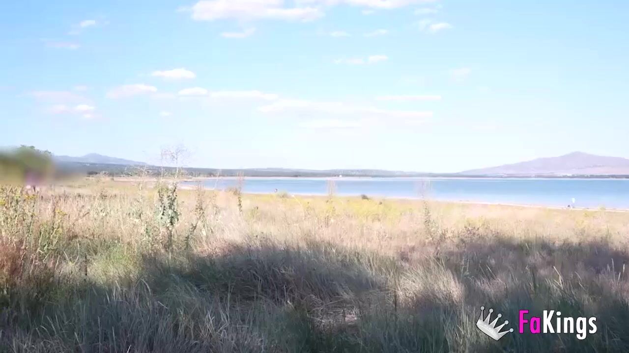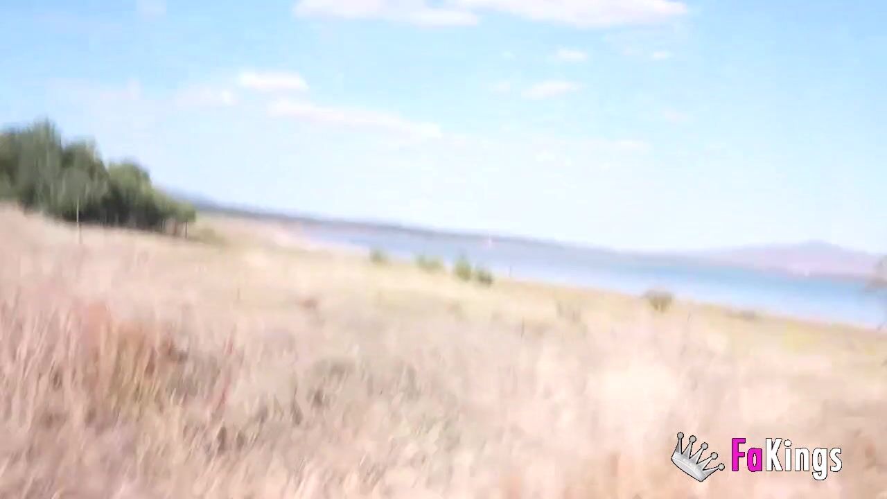 Amazing redhead Sofia Santana wants to bang random guys next to the lake!