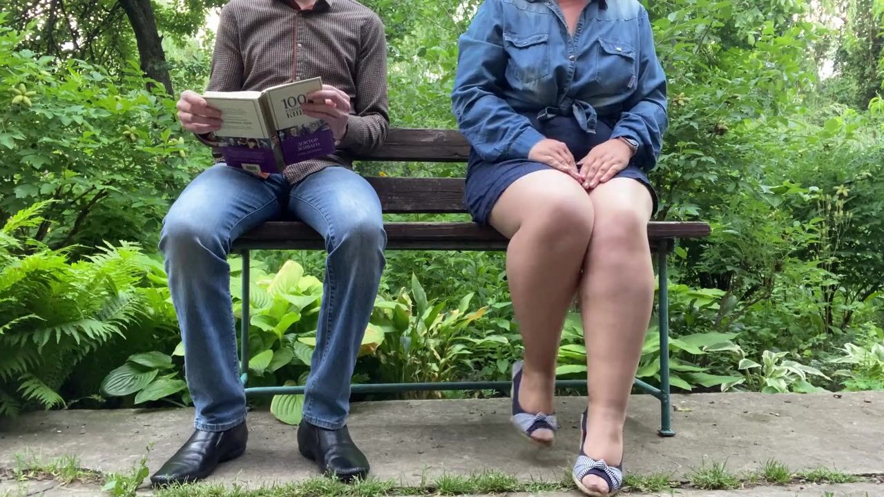 Amazing white ass in pantyhose pissing outside next to me