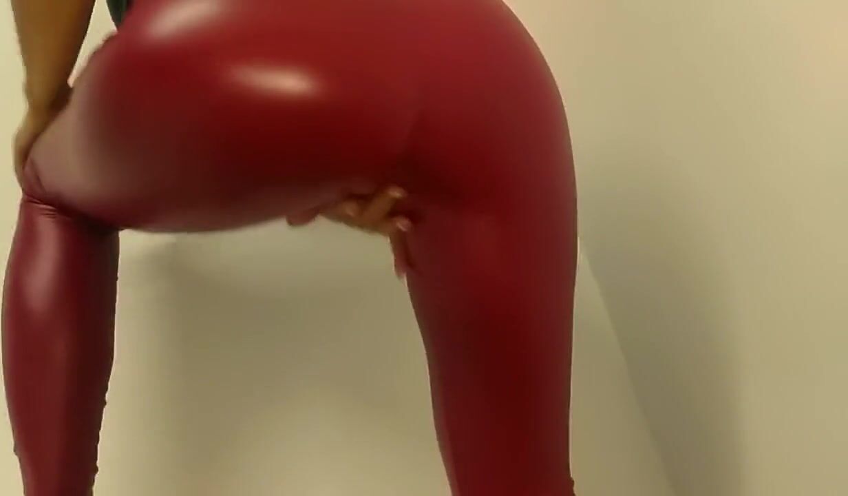 Ass in tight shiny wetlook leggings