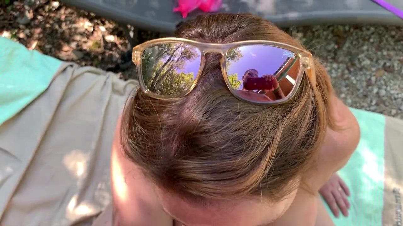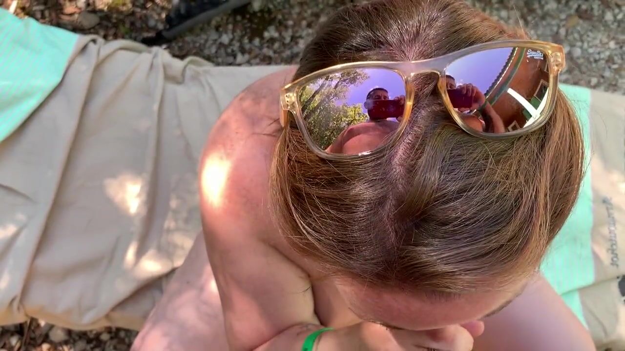 At the nudist campsite A pregnant stranger sucks me while her husband is absent: I cum on her tits