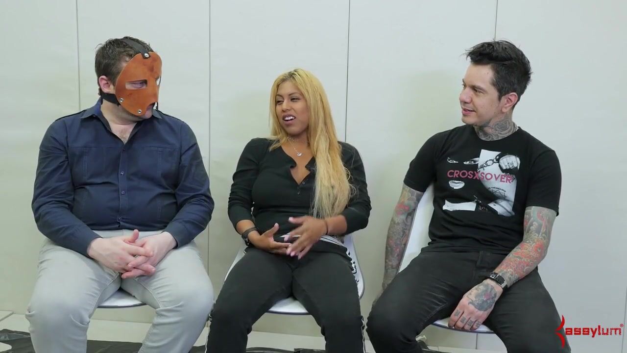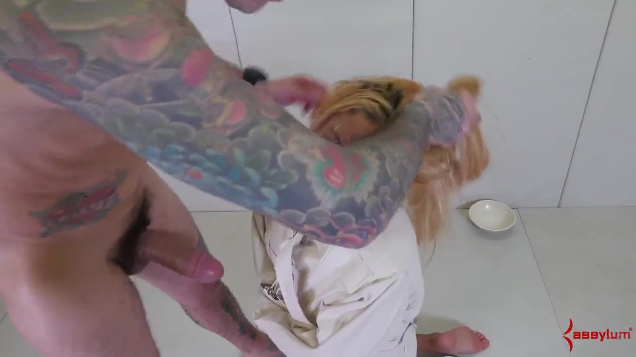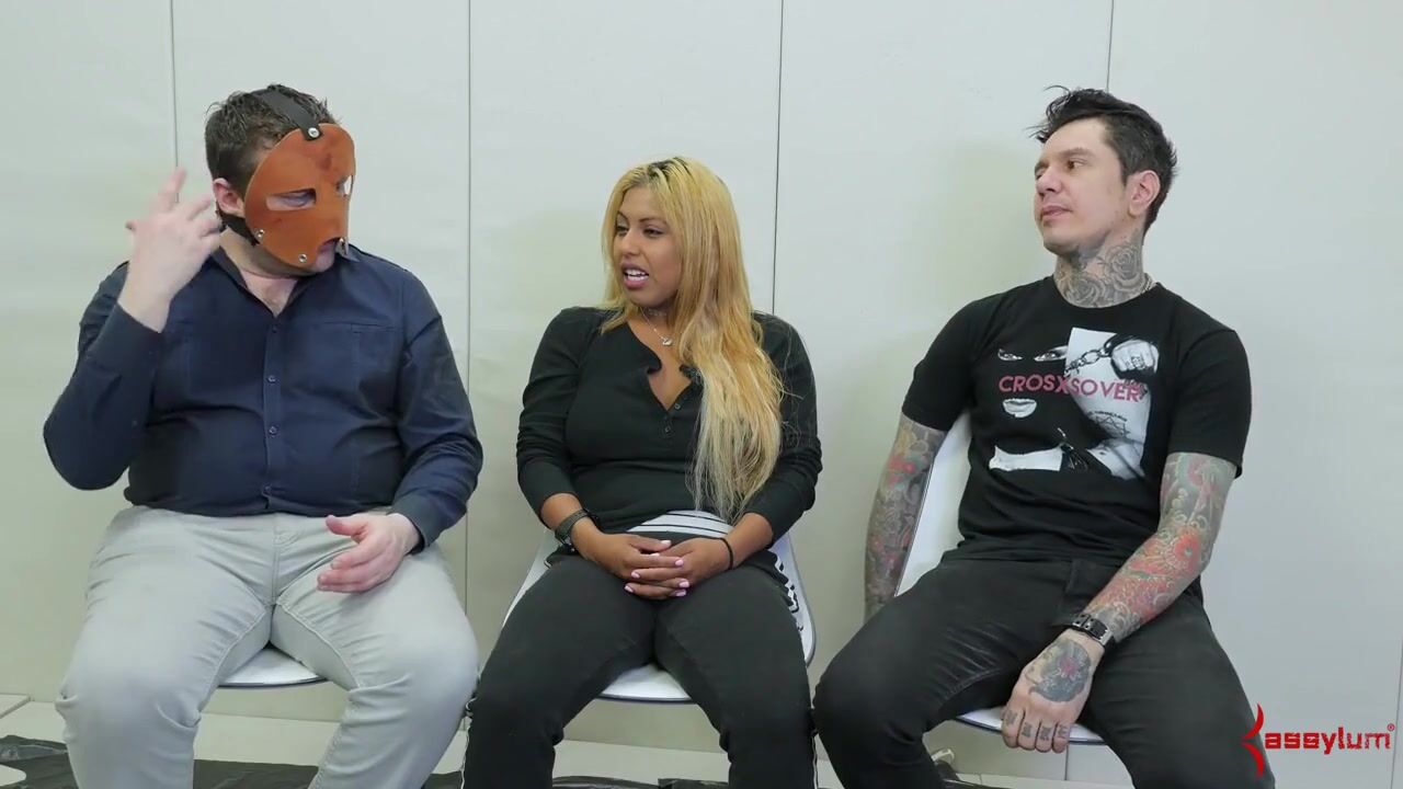 Ball sucking sub in trio getting her ass filled