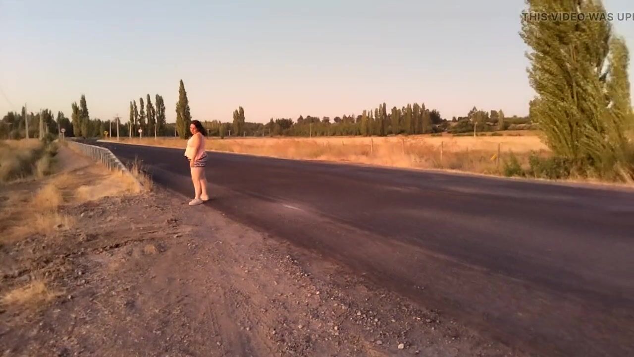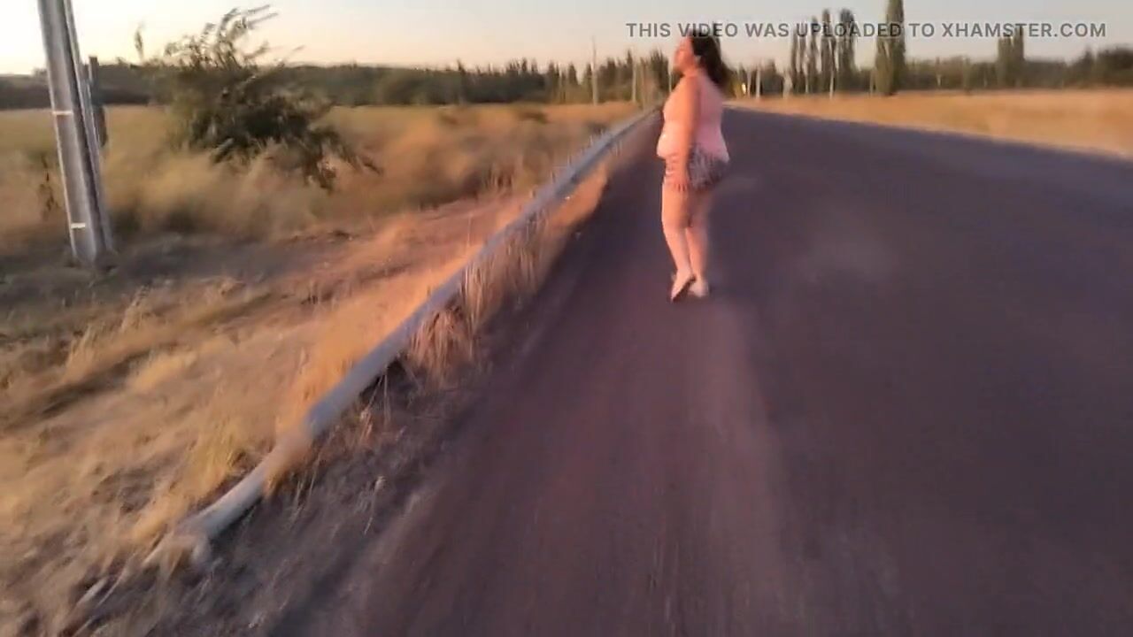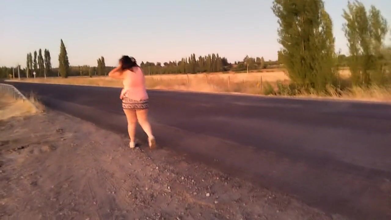 bbw walking outdoorsin way half naked