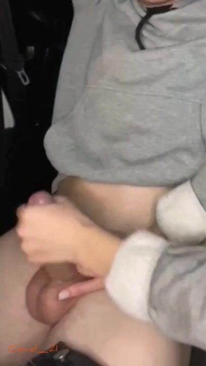 Beautiful Girl Jerked Off Big Dick in The Car After Dance School.
