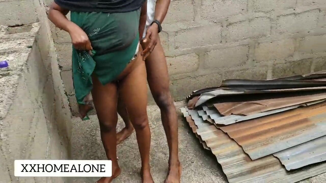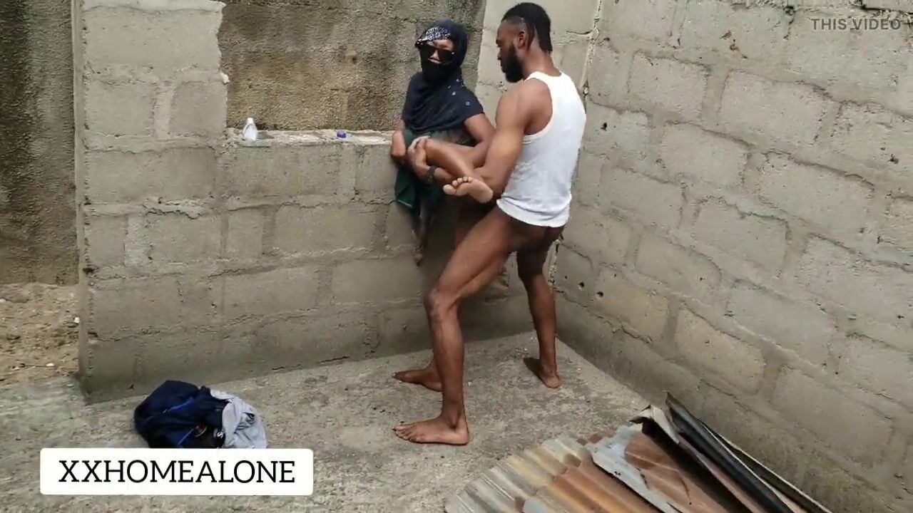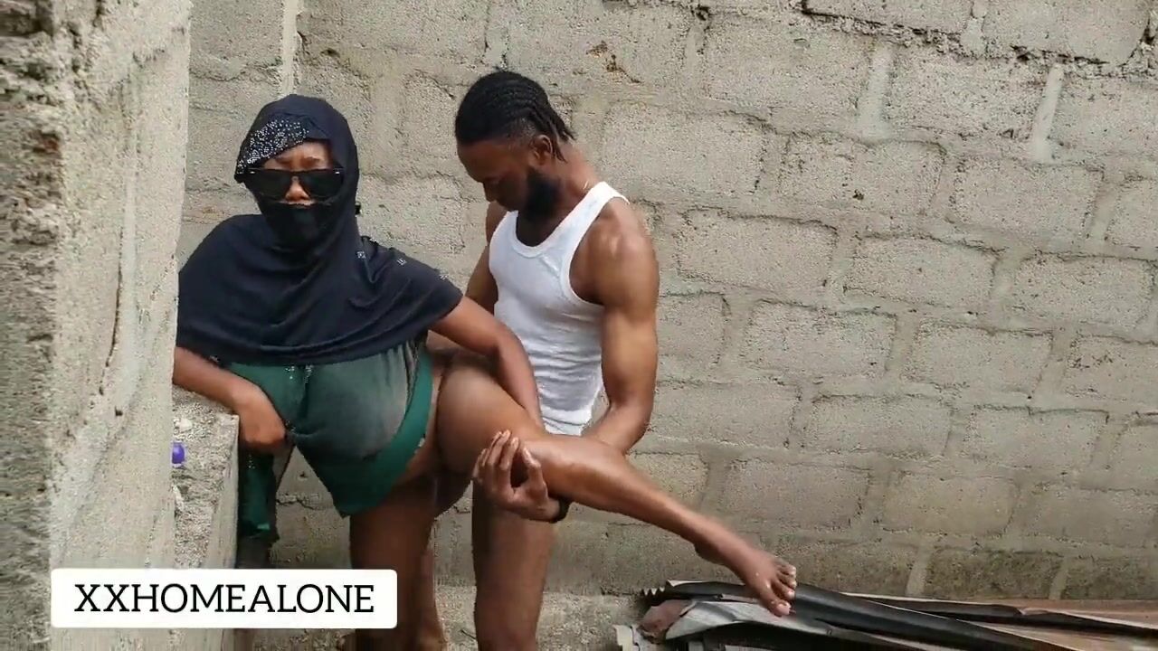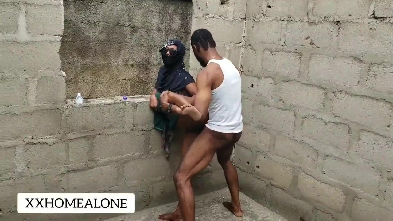 Big natural titts fuck African fat cock in public.
