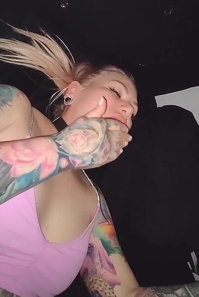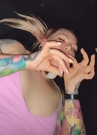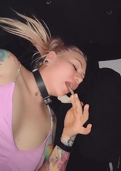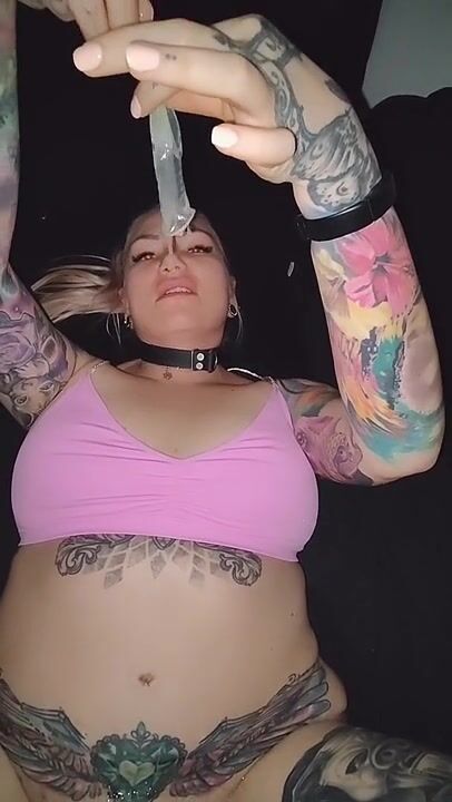 Blonde cumslut playing with cum from condom