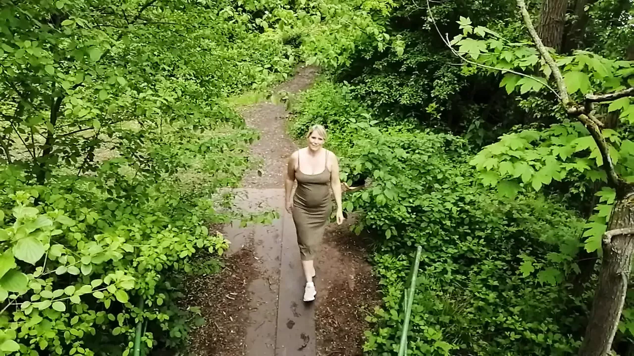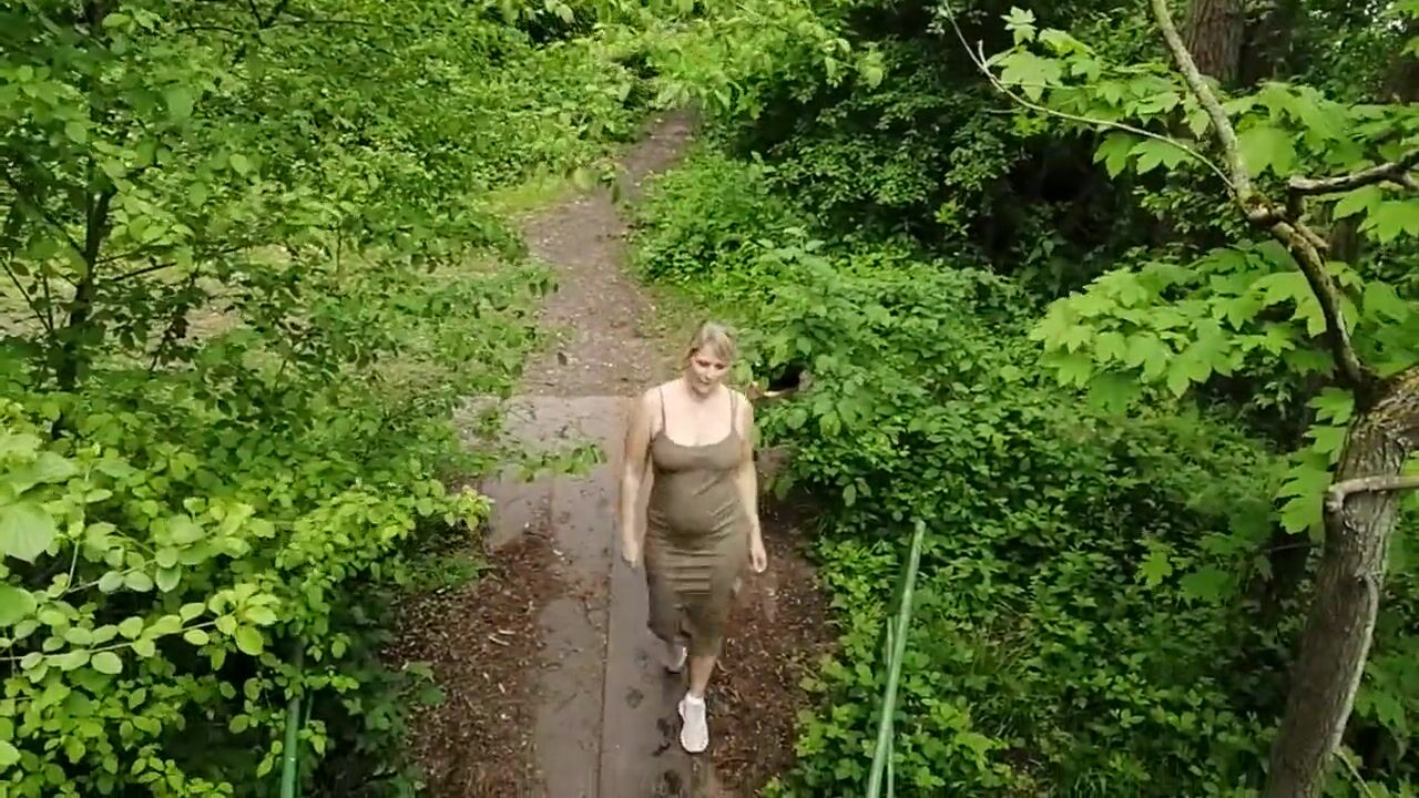 Blowing on the bridge in the forest