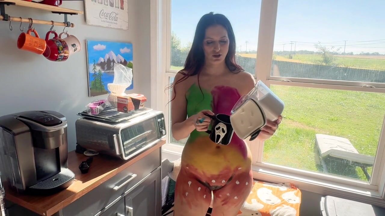 Body Painted Housewife Shows You How To Make Your Husband The Perfect Cup Of Coffee