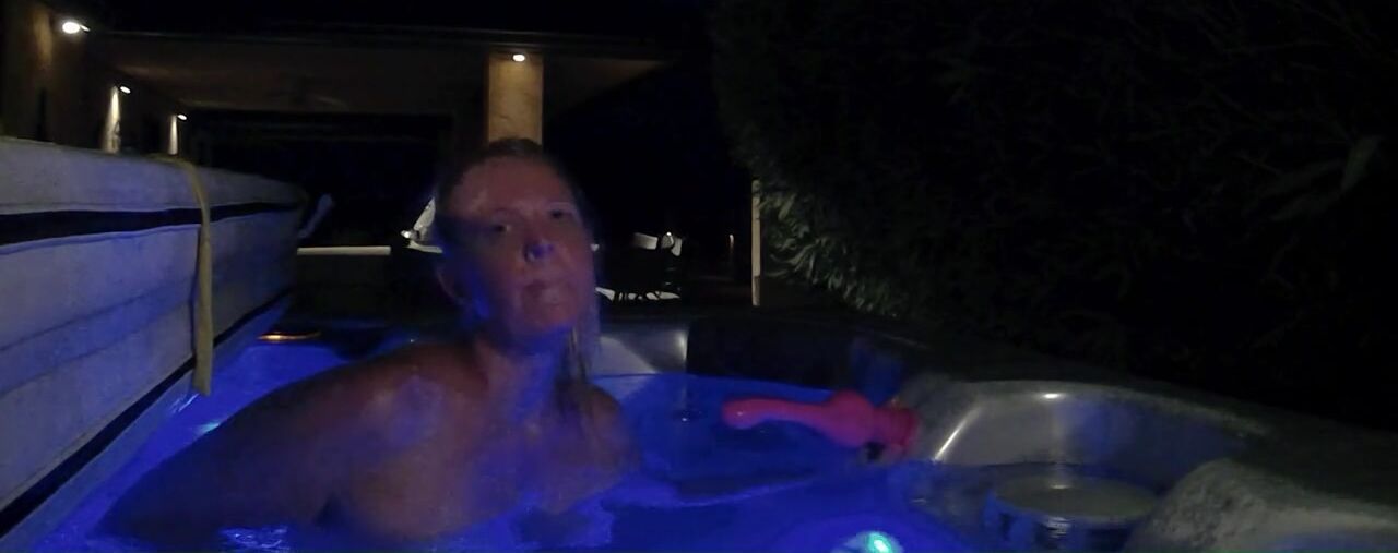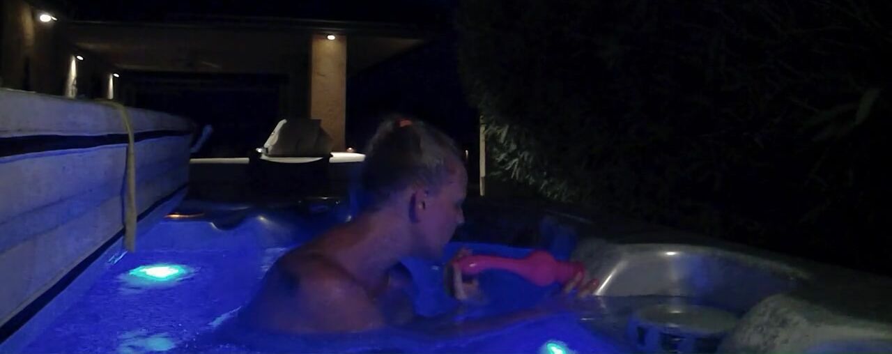Busty blonde in hot tub orgasms with dildos