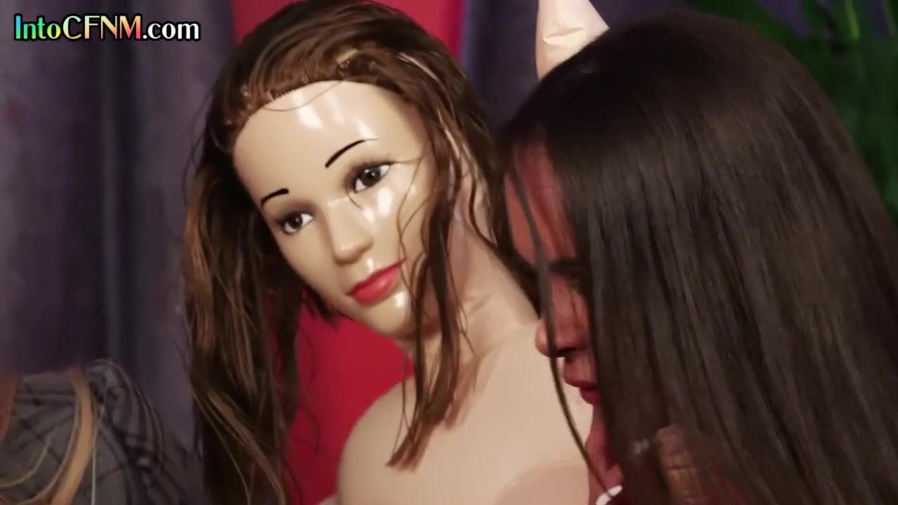 CFNM classy ladies jerk dick of sex doll addict in FFM 3some