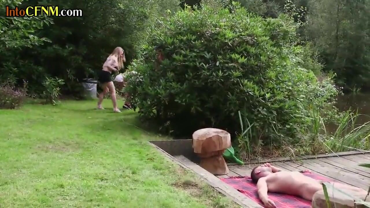 CFNM dominas sucking sub outdoors