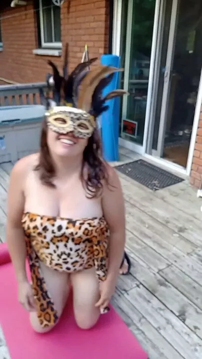 Cougar sucks cock outdoors for neighbors