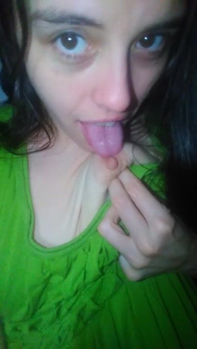 Crazy White Onlyfans Girl PinkMoonLust self Sucks Left Nipple while Wearing a Cute Green Dress