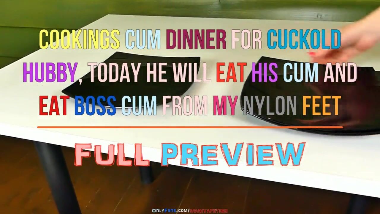 CUCKOLD HUBBY WORSHIP NYLON FEET HER SLUT WIFE, CUMSHOT AND EAT OWN CUM AND EAT BOSS CUM FROM CONDOM