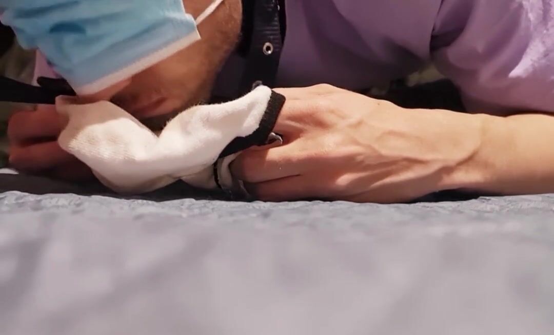 Cuckold husband waiting for me sniffing my dirty socks and lick clean my lover cum