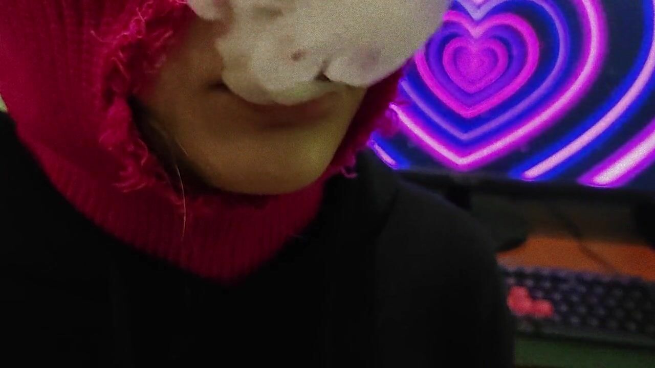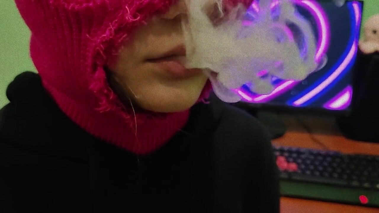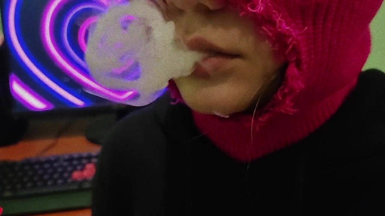 CUTE GIRL IN BALACLAVA SMOKING VAPE TO MUSIC! SMOKING FETISH!