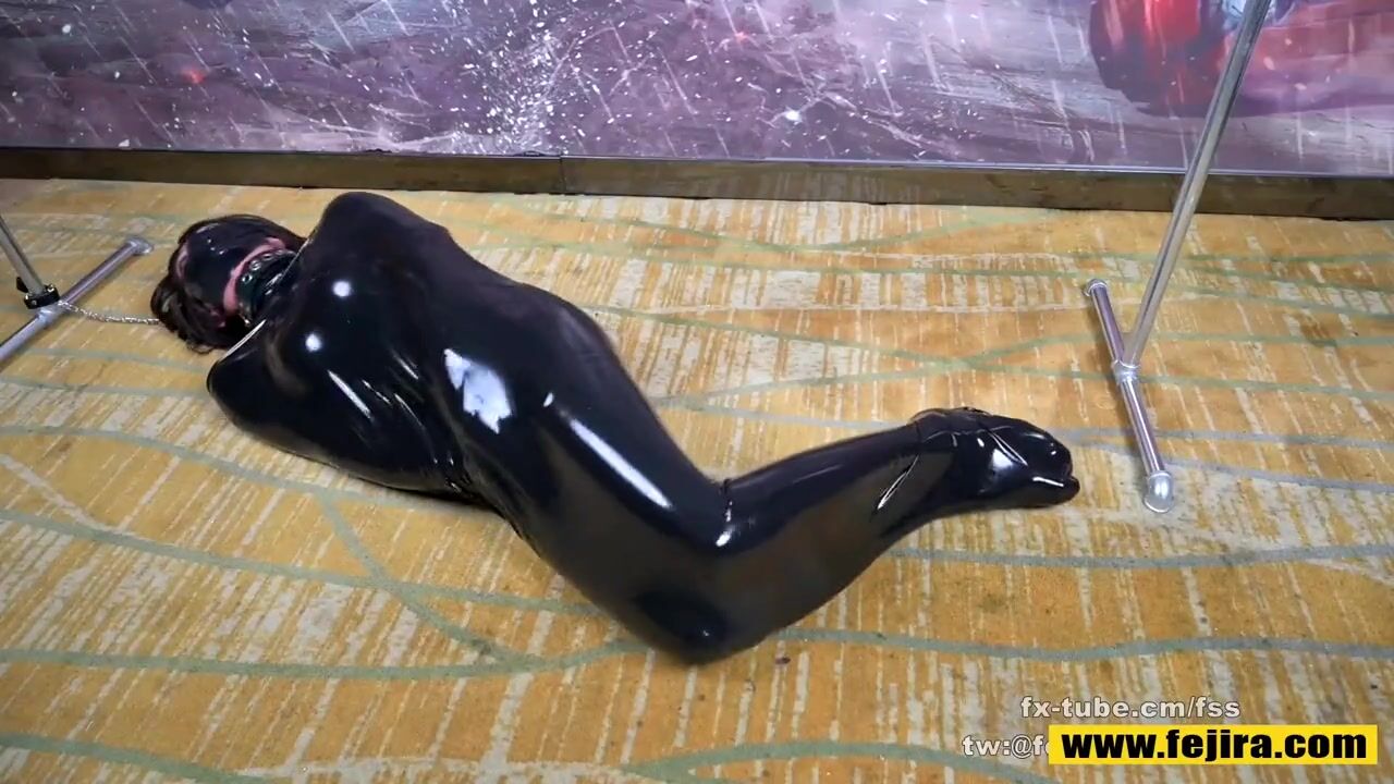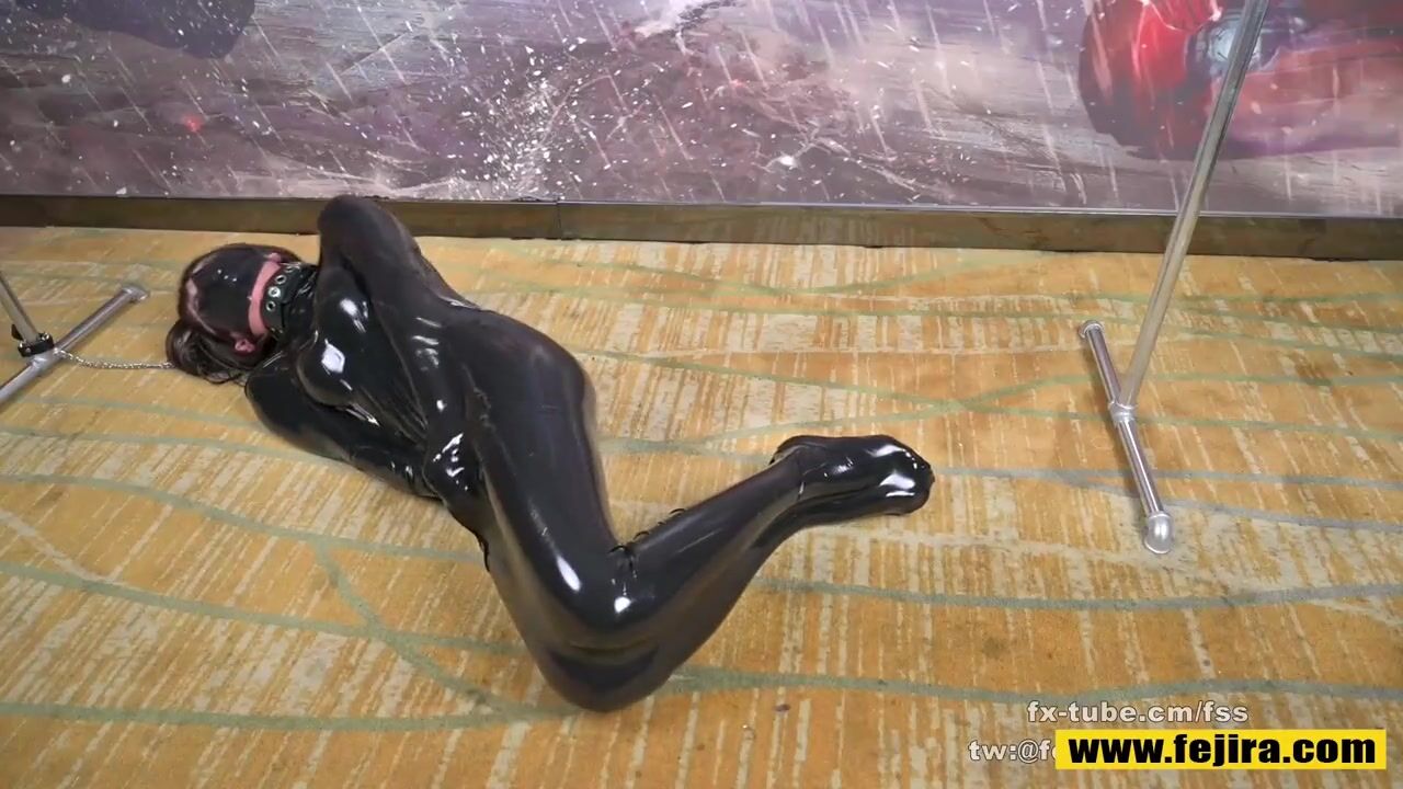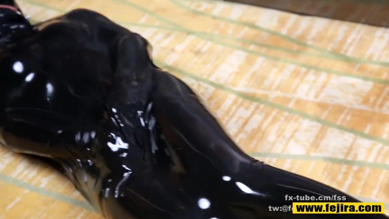 Fejira com Latex vacuum sleeping bag bondage