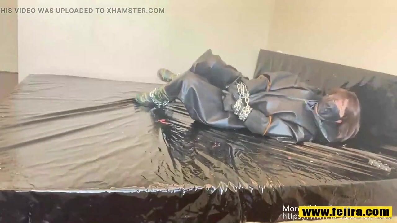 Fejira com Wearing heavy latex clothing tied to iron chains orgasm