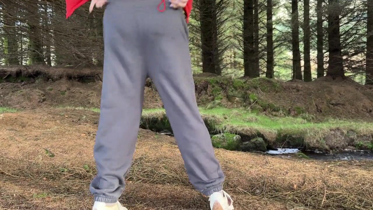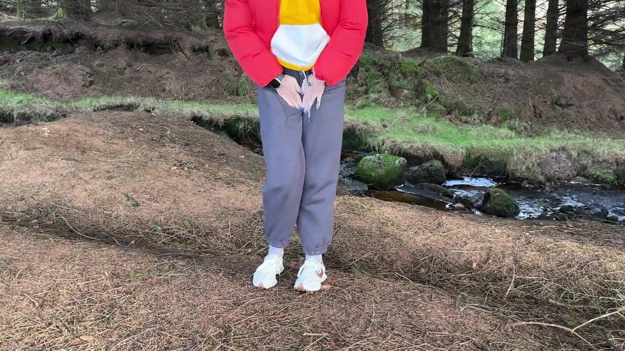 Girls peeing near the forest on the public road