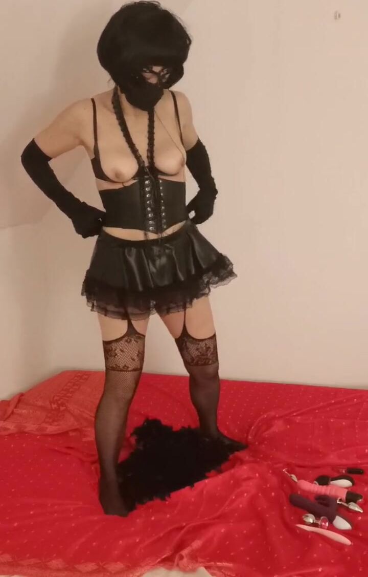 Goth sexy cosplay, milf striptease and toying