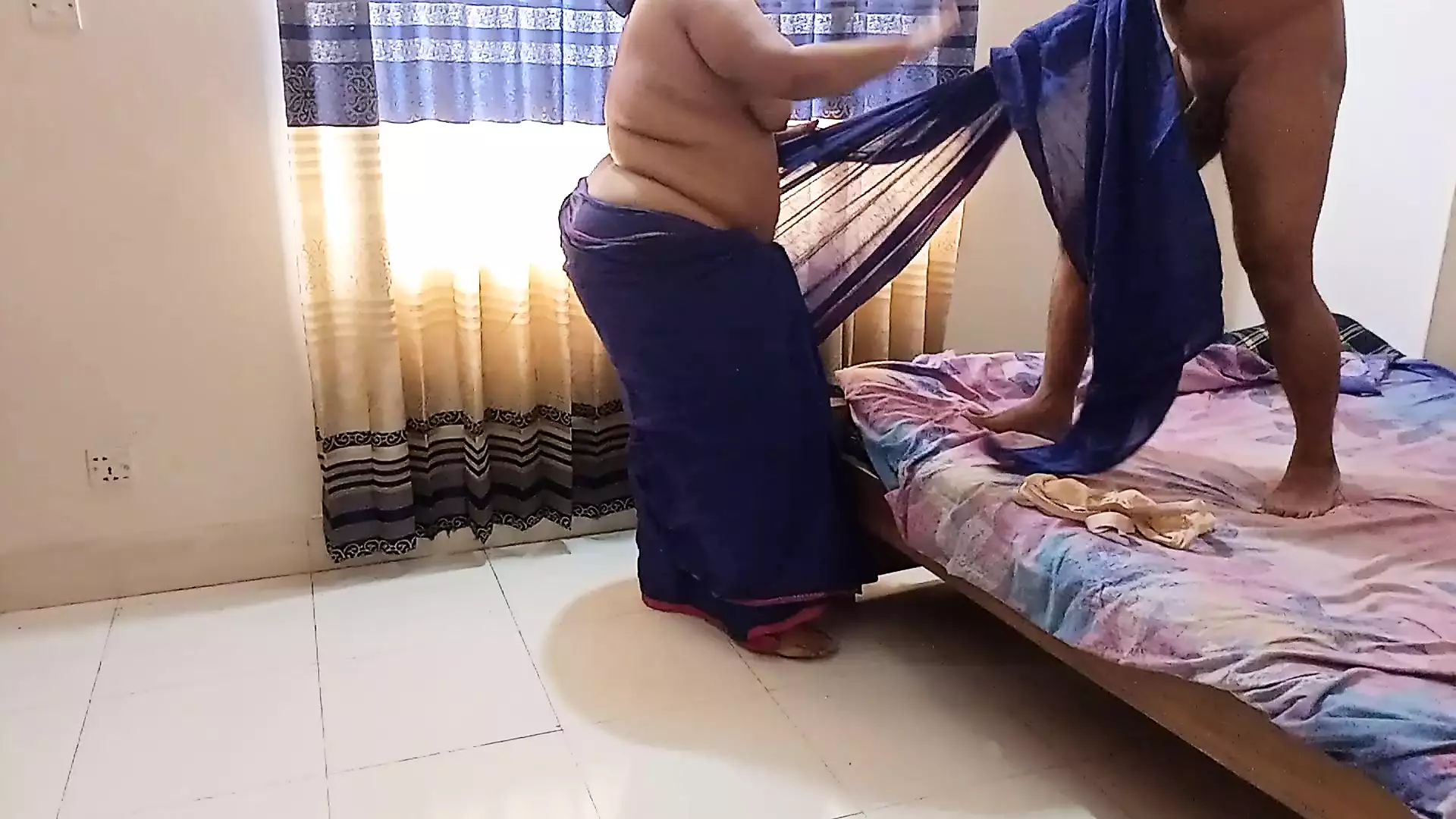Gujarati Hot Stranger Granny Wear Saree Without Blouse, when a 18y old Guy Tied Her Hand with saree & jabardast Chudai