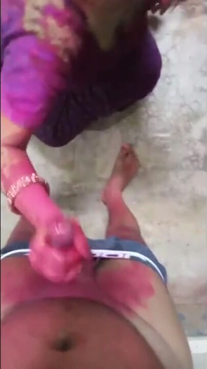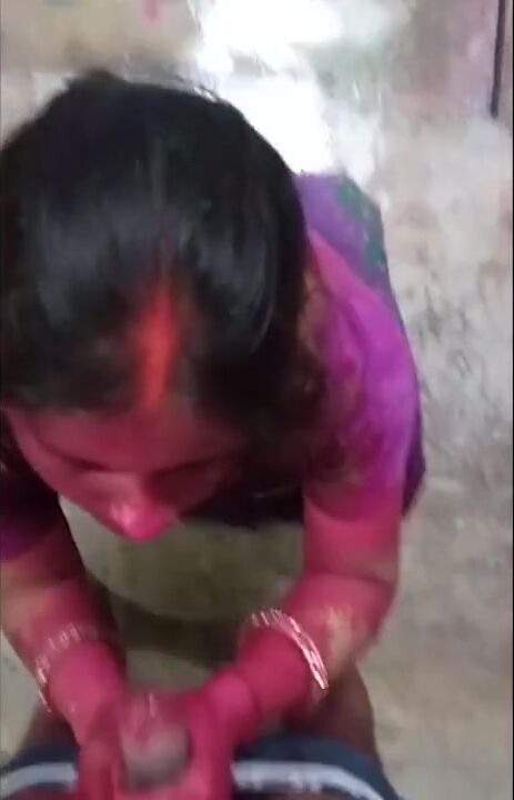 Holi Ki Subeh Bhabhi se Apna Kala Mota Lund Chuswaya