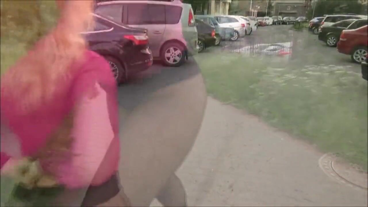 Hot blonde with big booty on the street