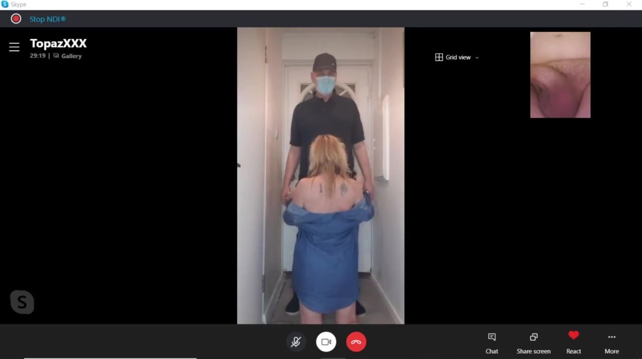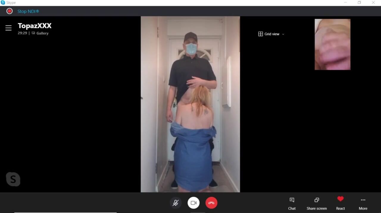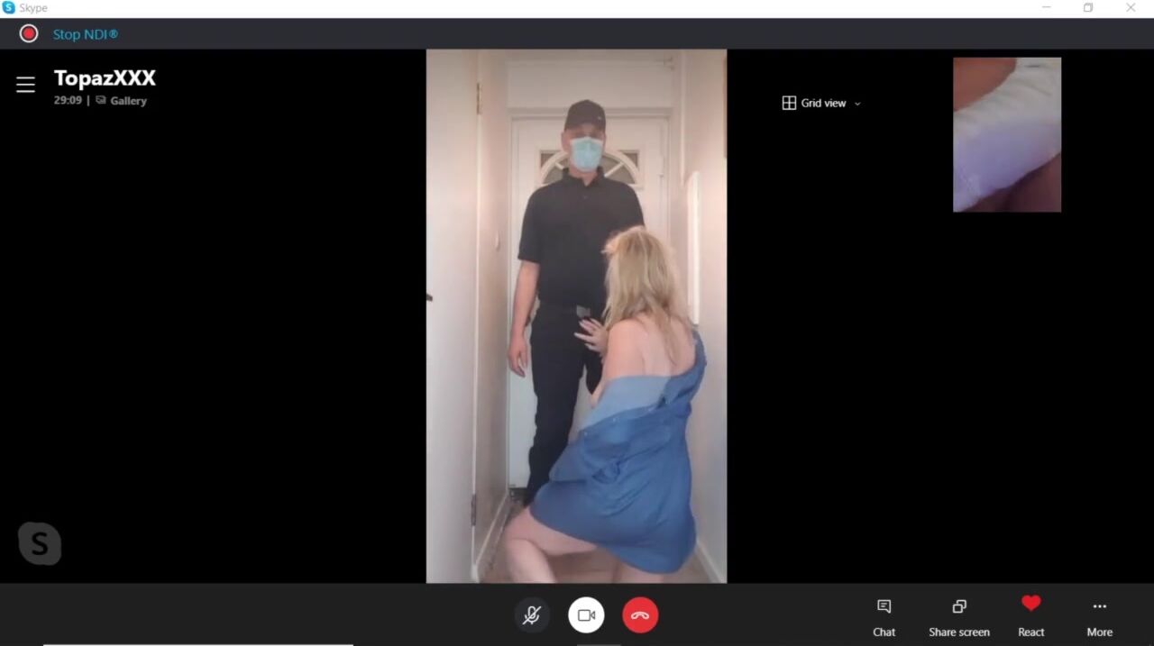 HOT Mature Stepmom Blows & Shags Pizza Man - during a Skype Call to Hubby!
