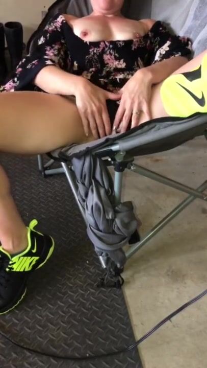 Hot MILF Wearing a Sexy Romper Slides over her Panties and Rubs her Pussy & Nipples in the Garage