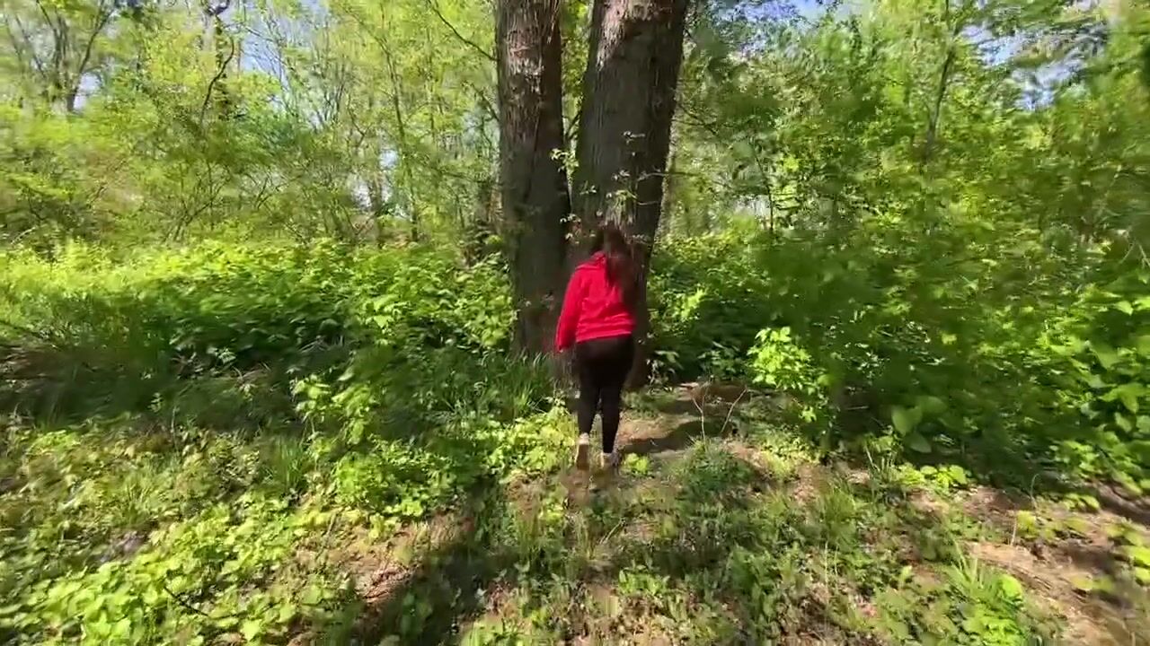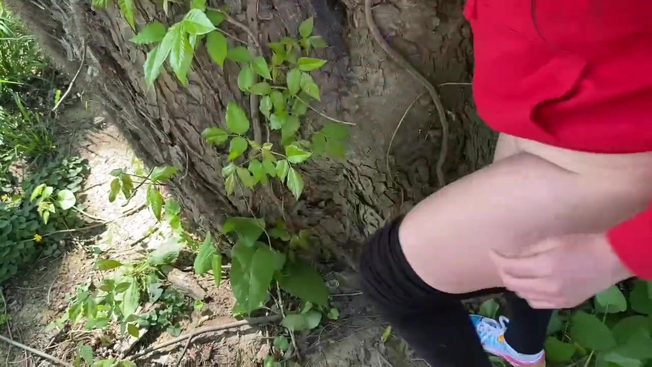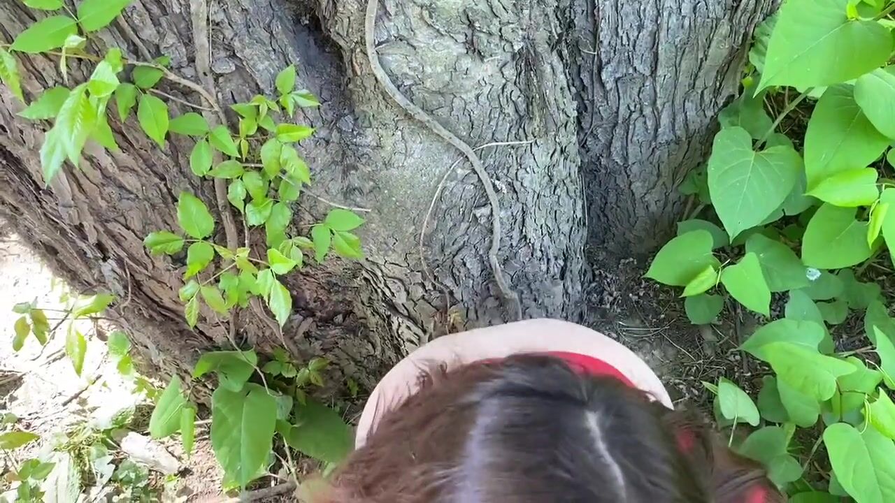IN THE WOODS getting bent over and fucked next to a tree by my boyfriend | Creampie ending