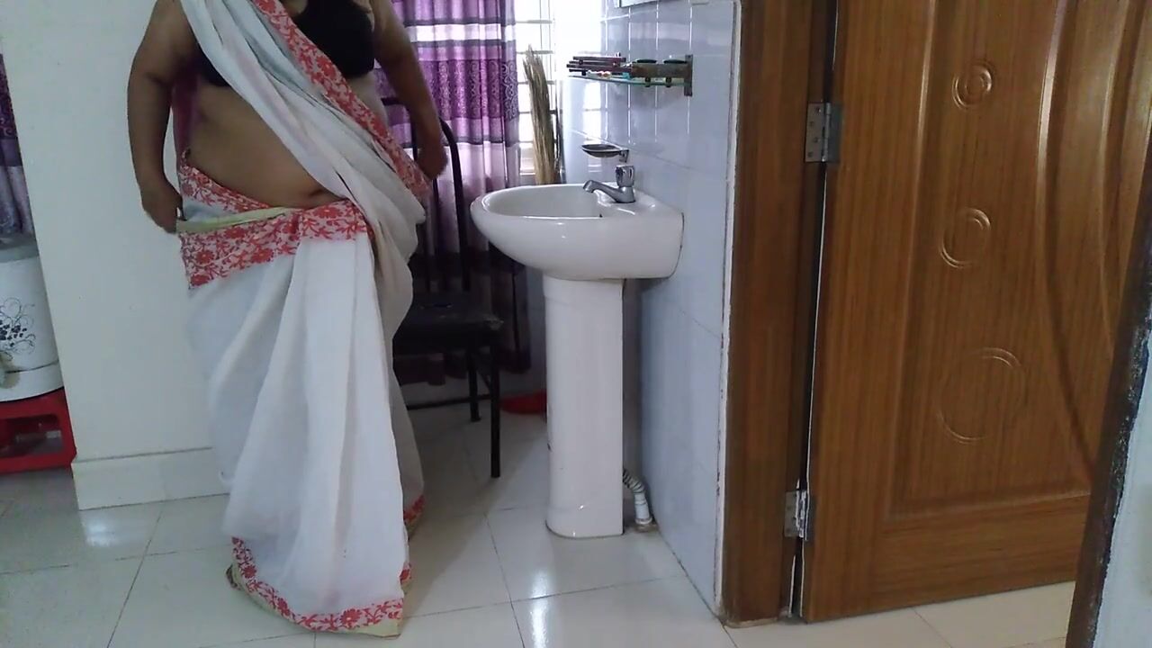 Indian college mam in saree getting ready to go to office, hot student sees madam's sexy body and fucks hard - Huge cum