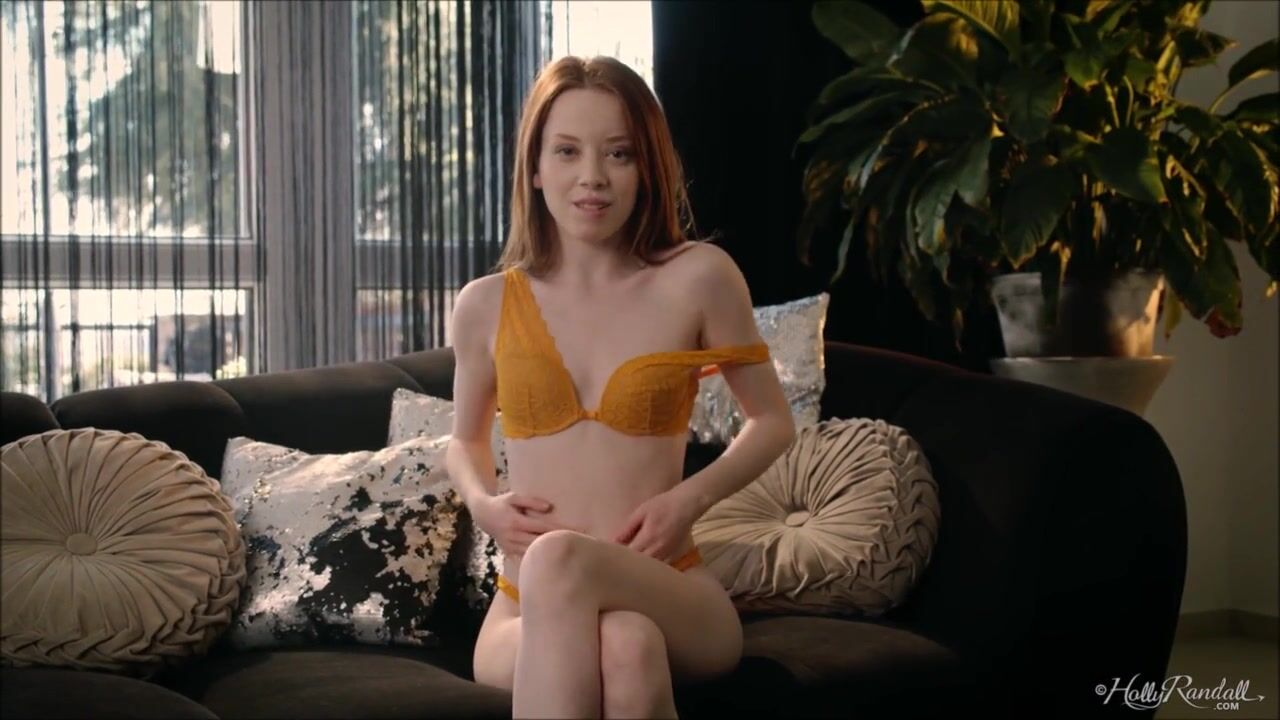 Lottie Magne striptease on her orange lingerie and play her slit