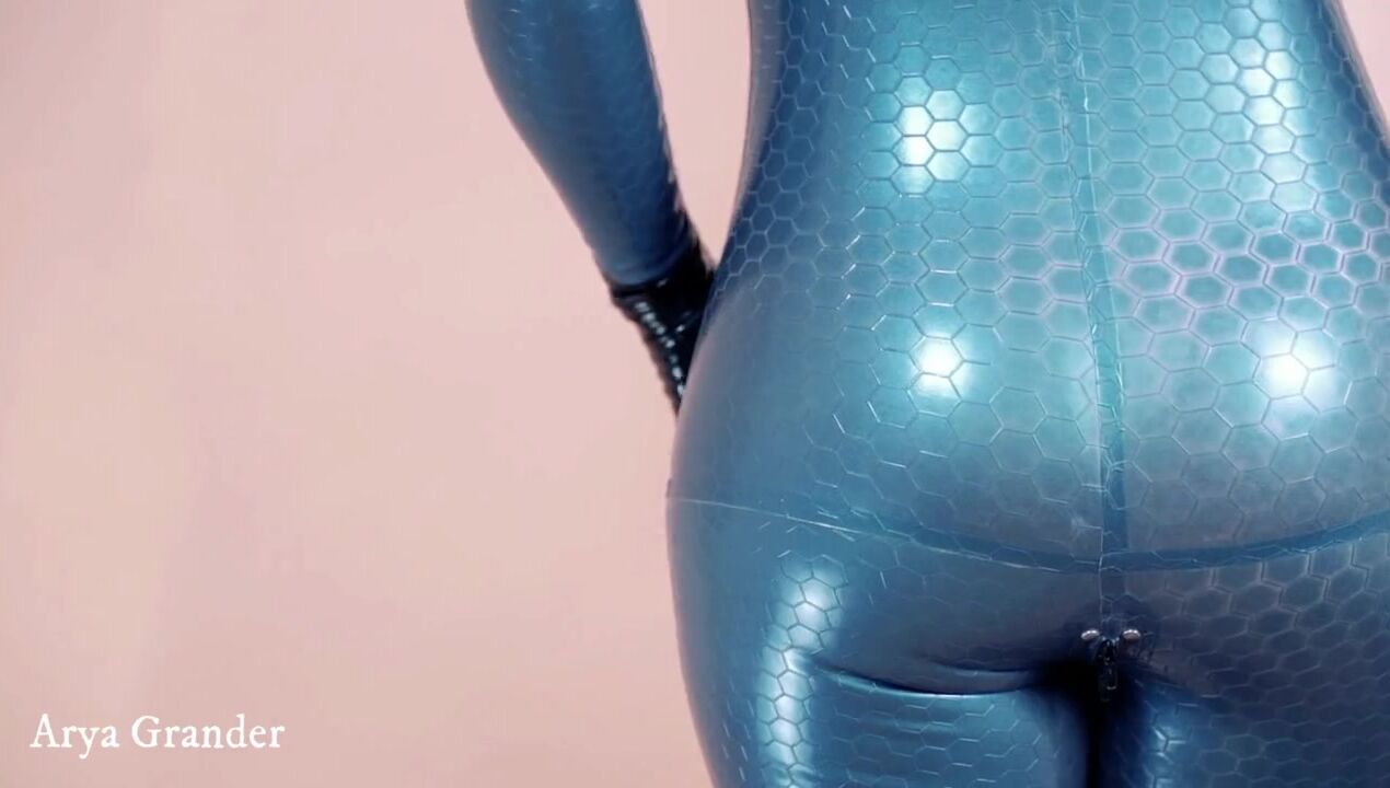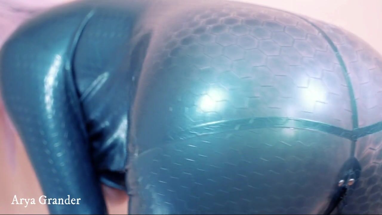 Luxury Latex Rubber Catsuit on Curvy Body of MILF Fetish Model Arya Grander