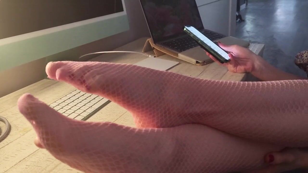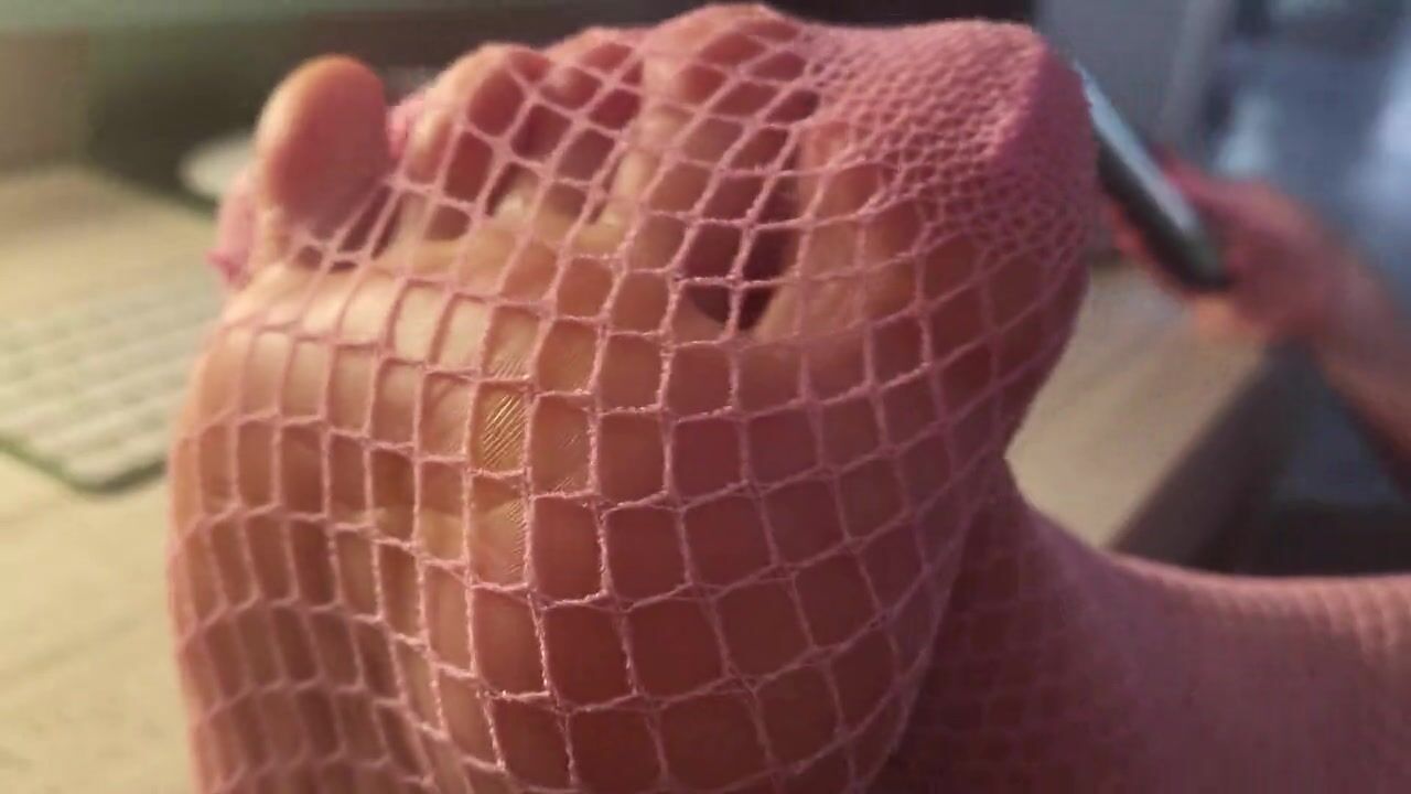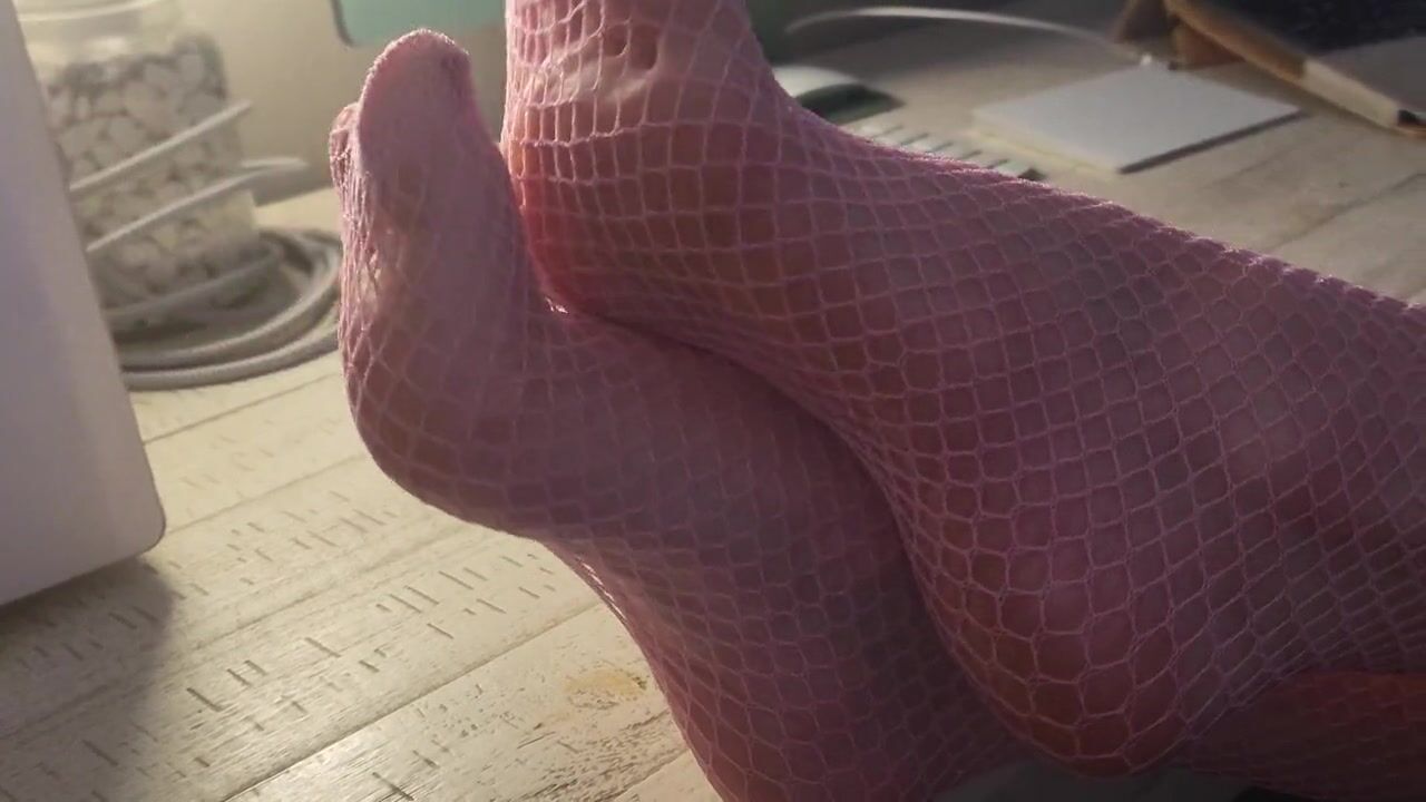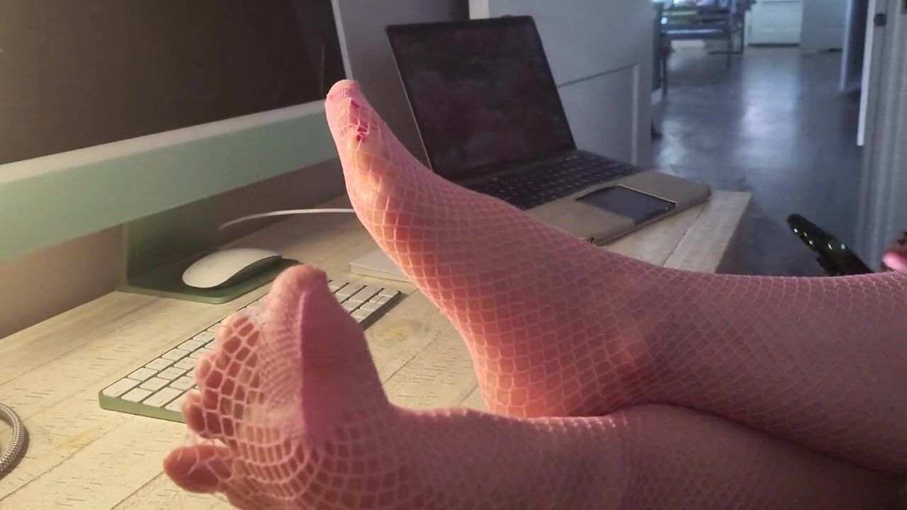 MissTandFeet showing off new pink fishnets for pervs to see