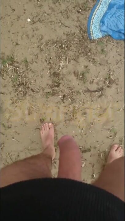 My big cock on the beach, voyeurs and milf