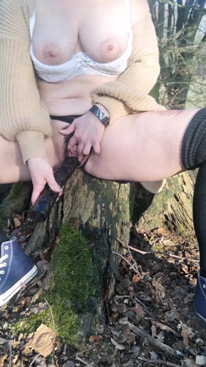 My Hairy Pussy Fucked with Dildo Outside in the Forest
