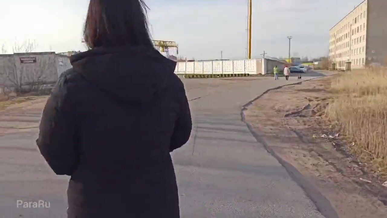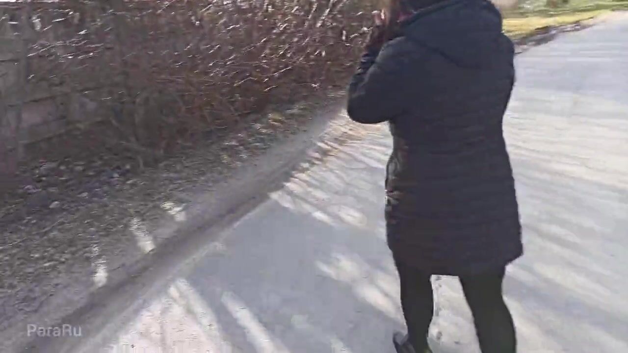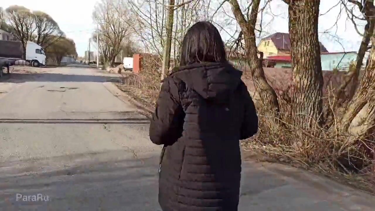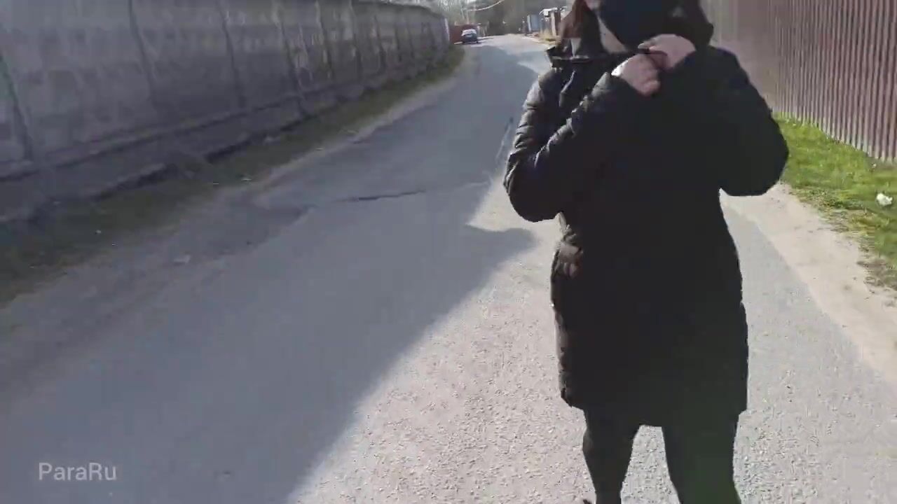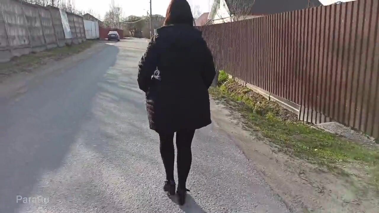 Naked, shameless wife walks down the street in a public place