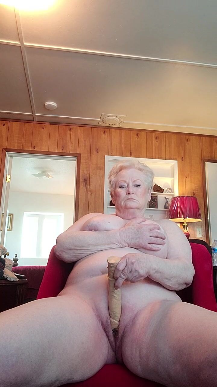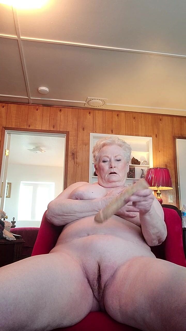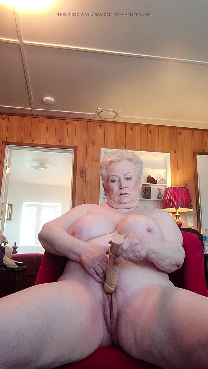 Nasty Granny Showing Off Her Fat Pussy As She Rubs It With A Dildo