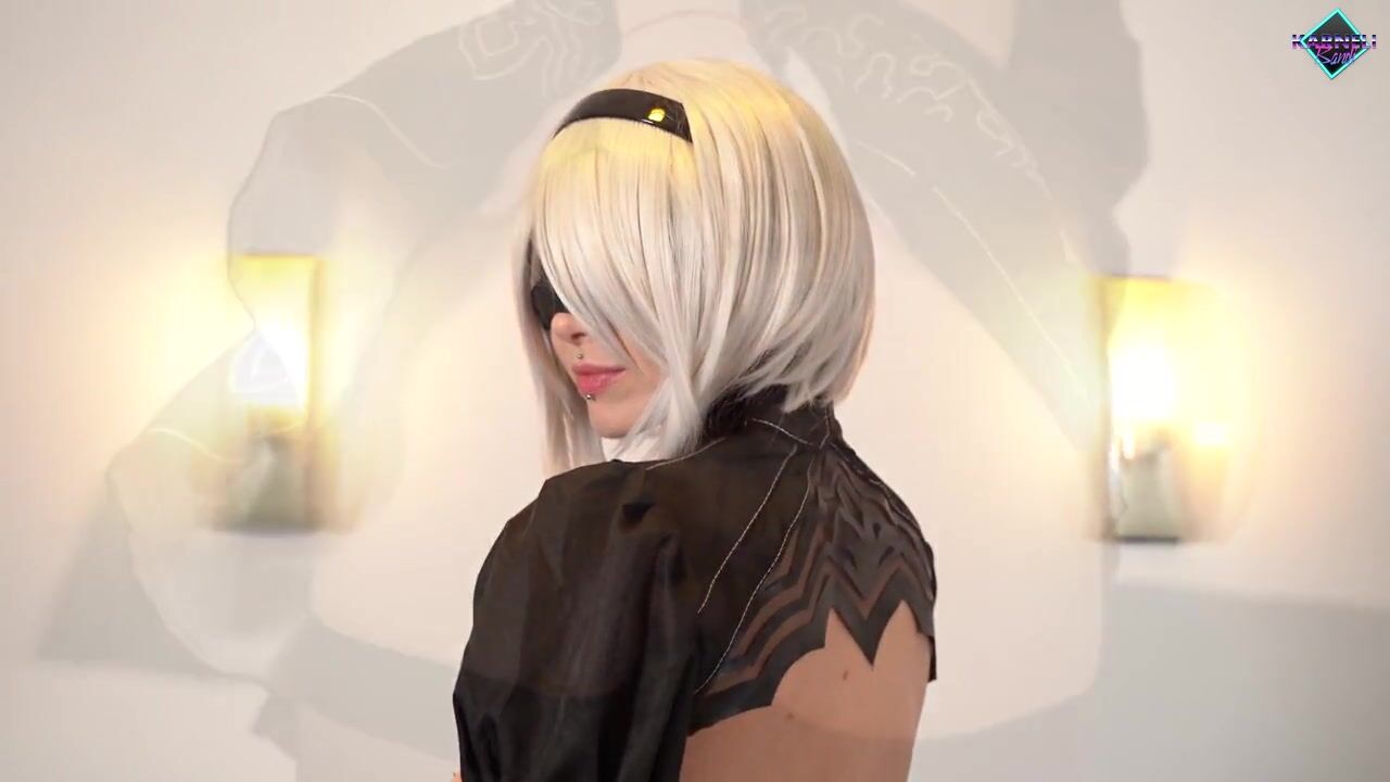 Nier Automata 2B plays with her ass and gets a creampie