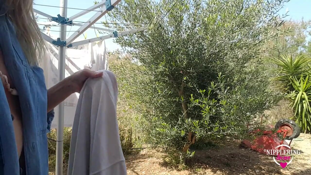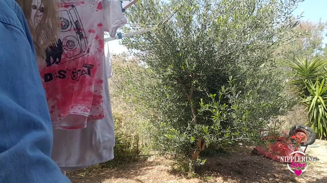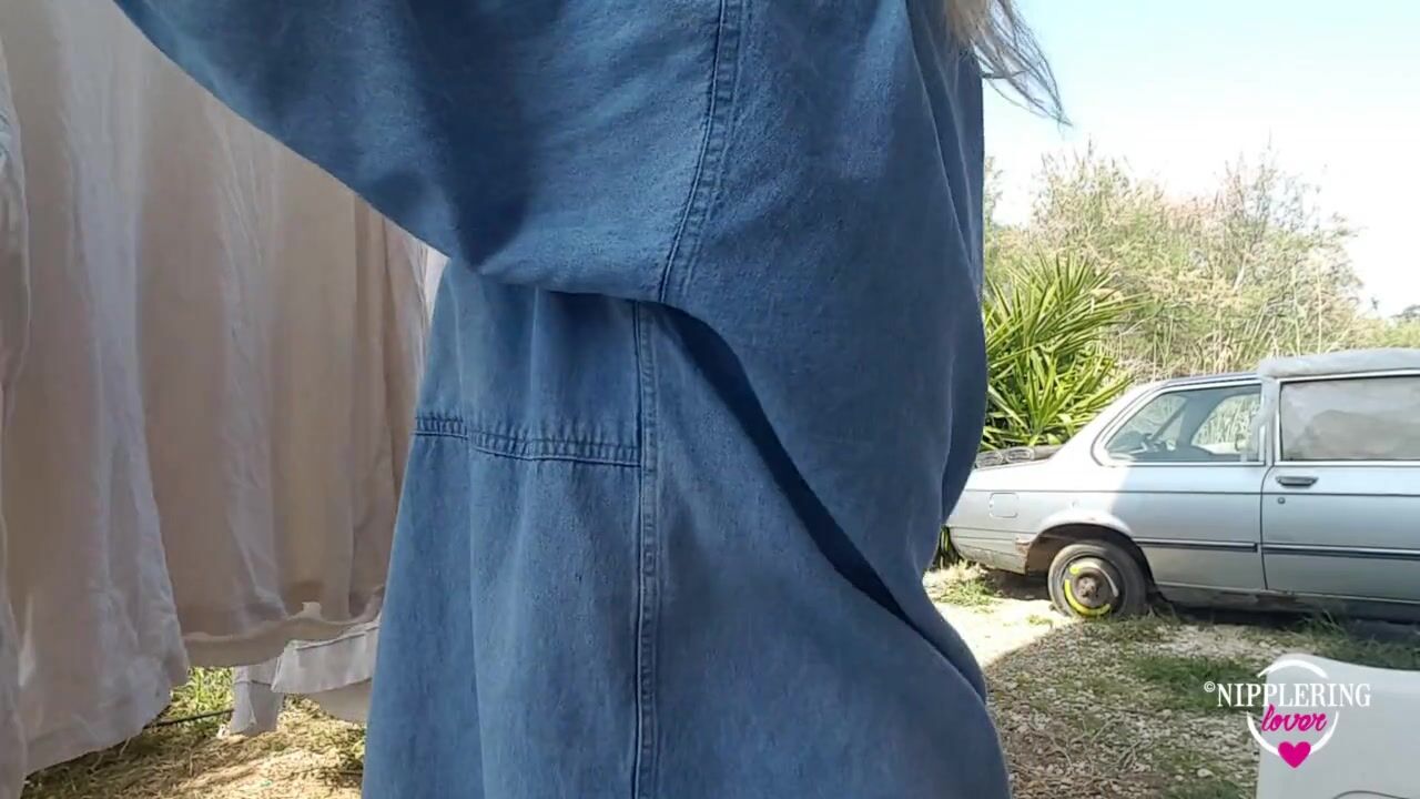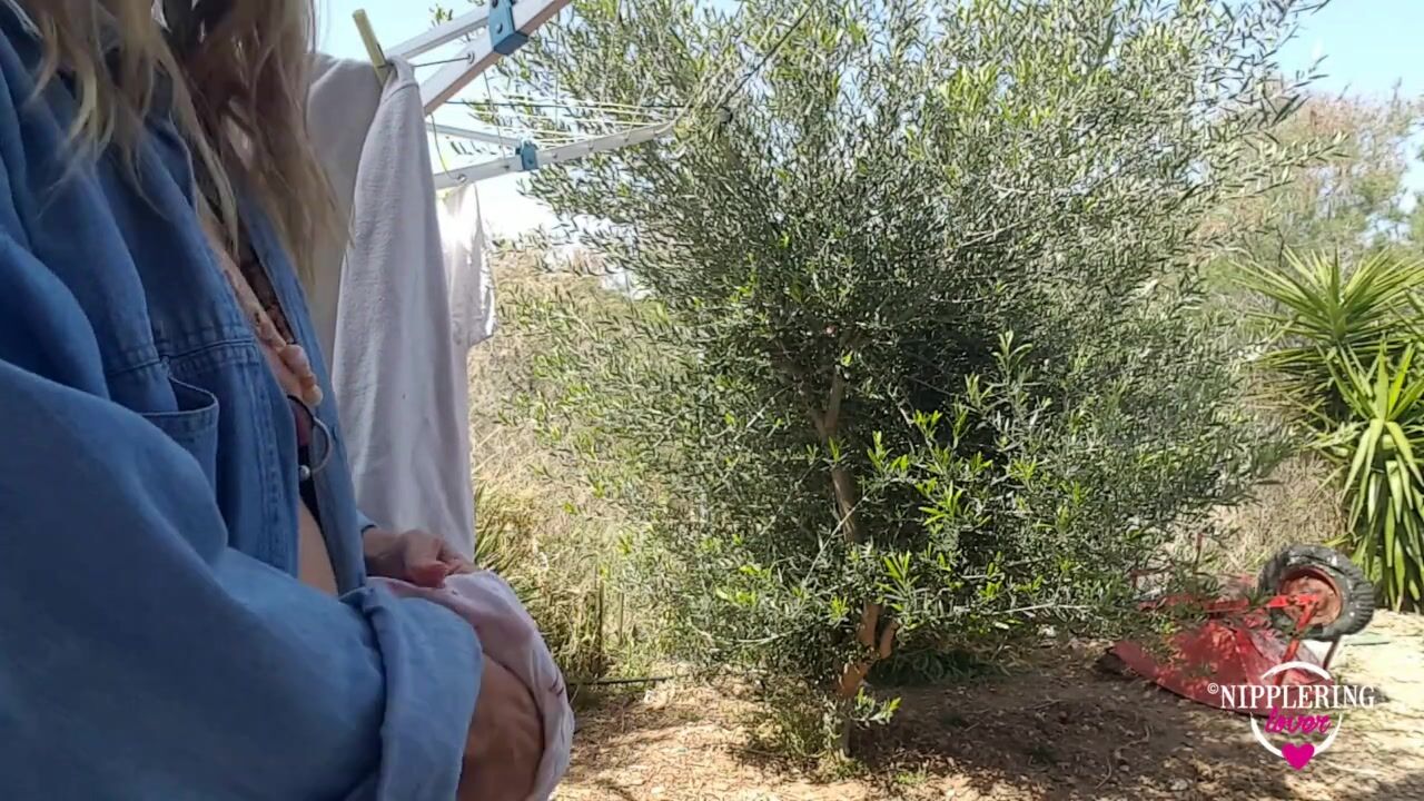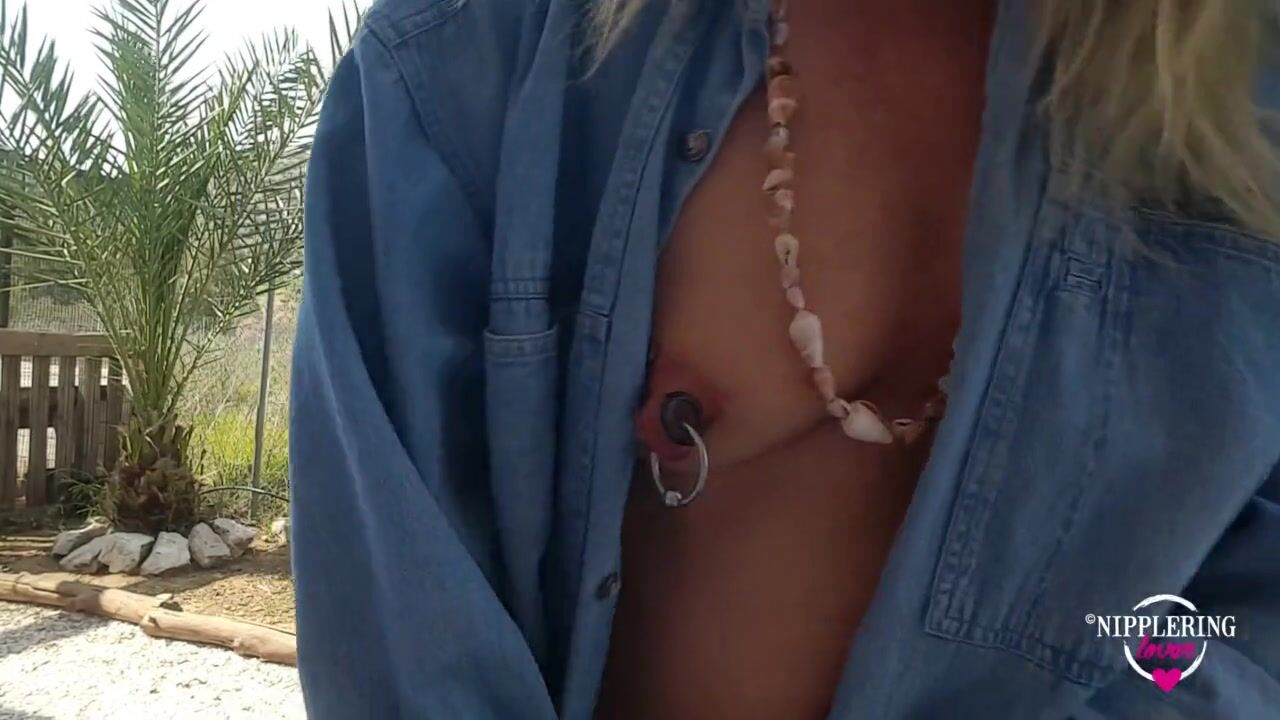 nippleringlover braless outside flashing pierced tits with huge large gauge nipple piercings