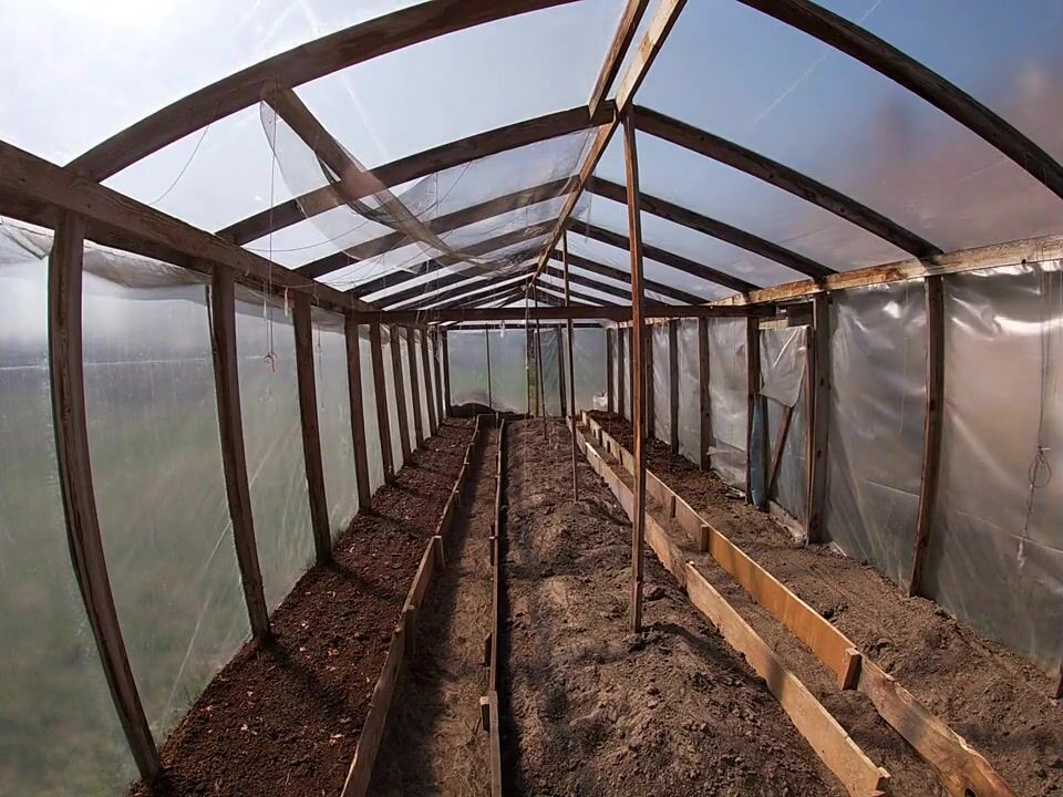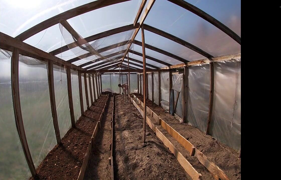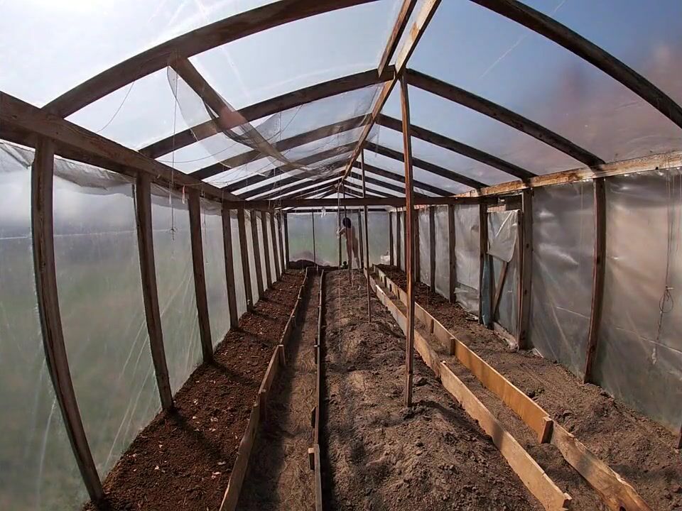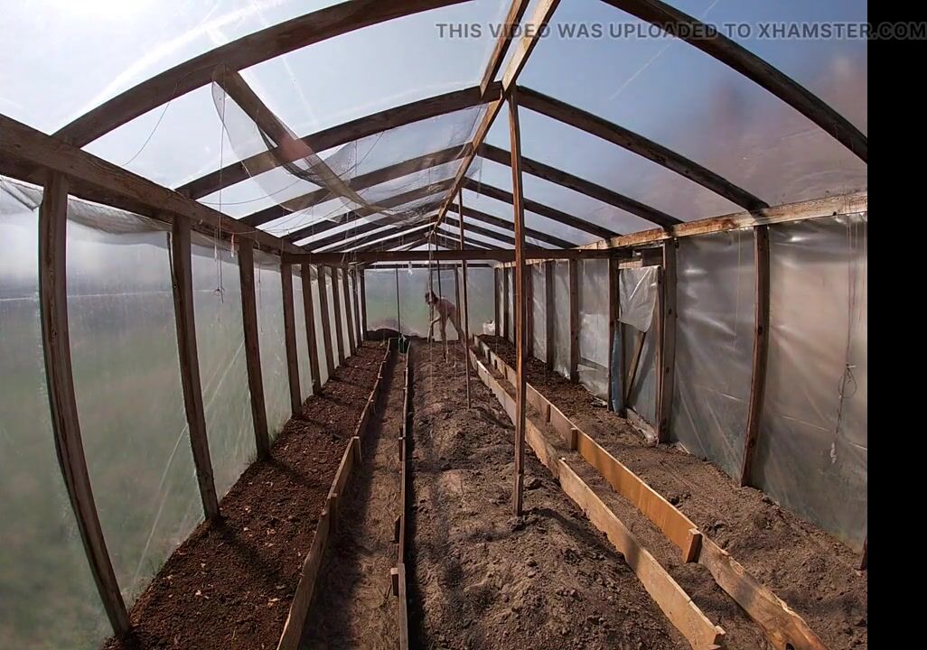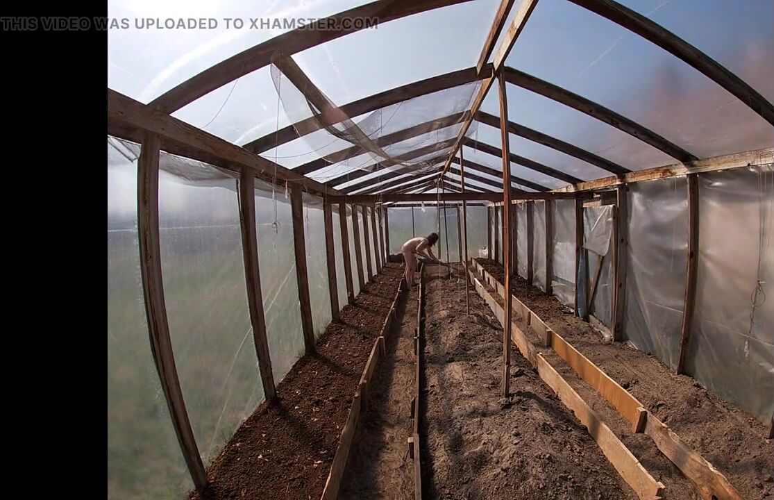 Nude house wife working in the greenhouse