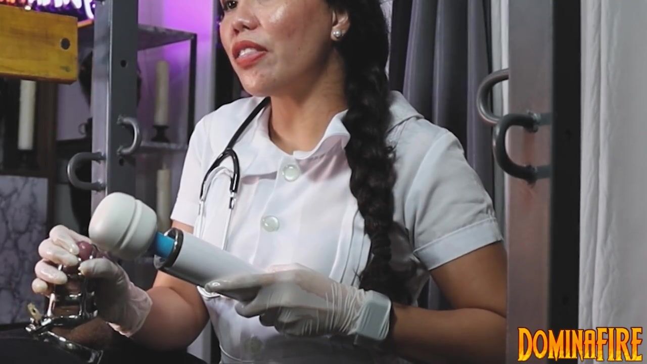 Nurse DominaFire Edging her Slave in Metal Chastity