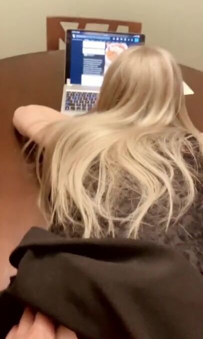Petite Blonde Browsing Tumblr Gets Bent over the Table and Creampied