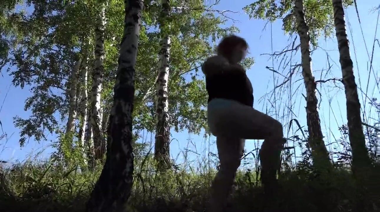 Piss in a public garden. Mature milf exposes big tits, shakes her fat ass outdoors. Hairy pussy urinates. Exhibitionism.