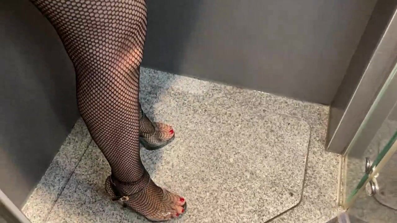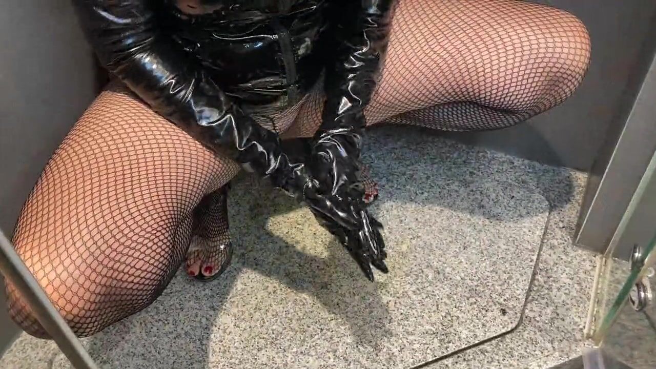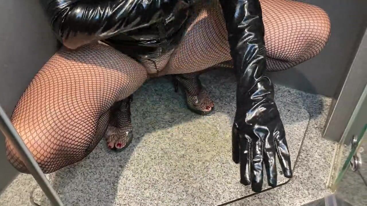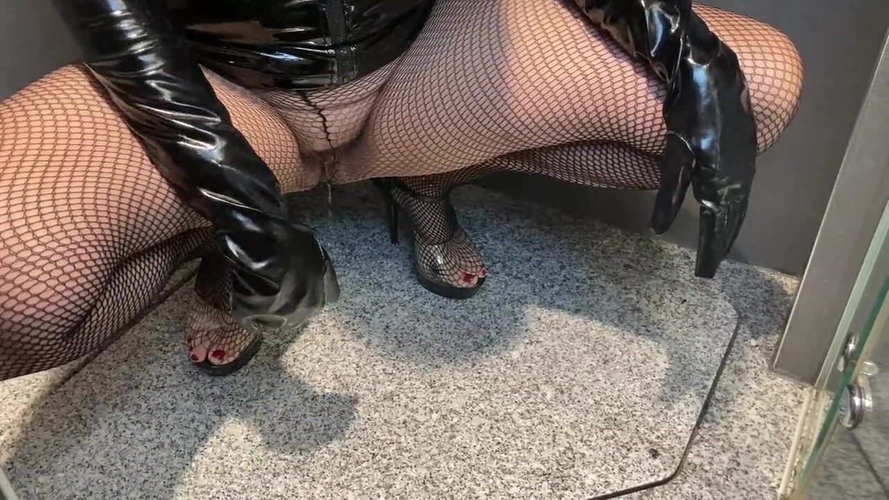 Pissing on long black vinyl gloves as per user request
