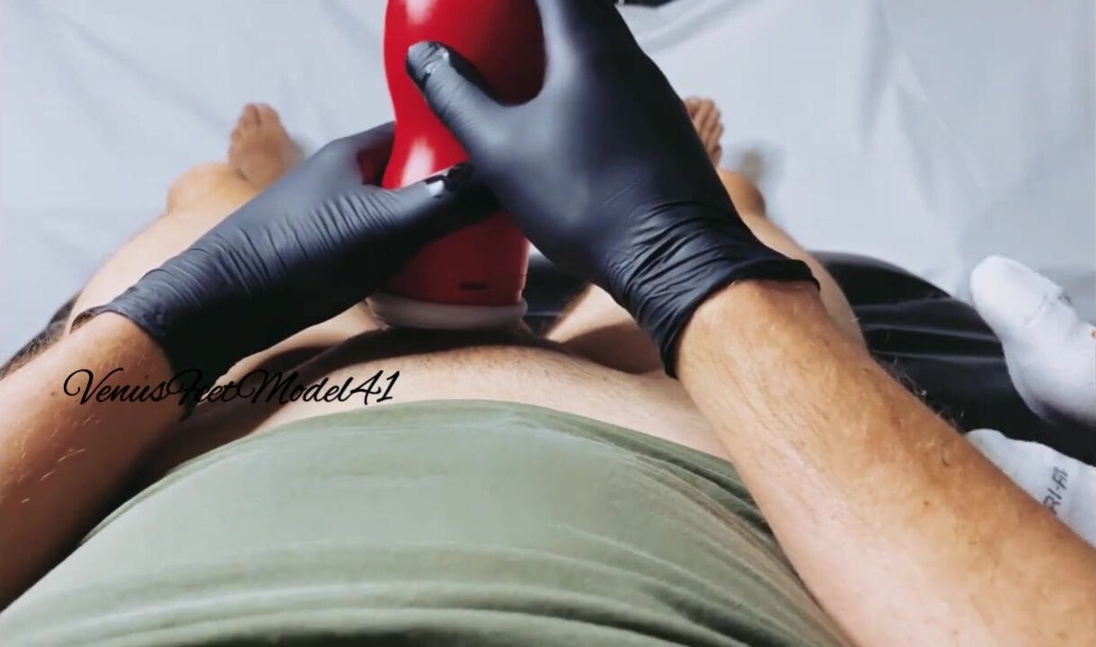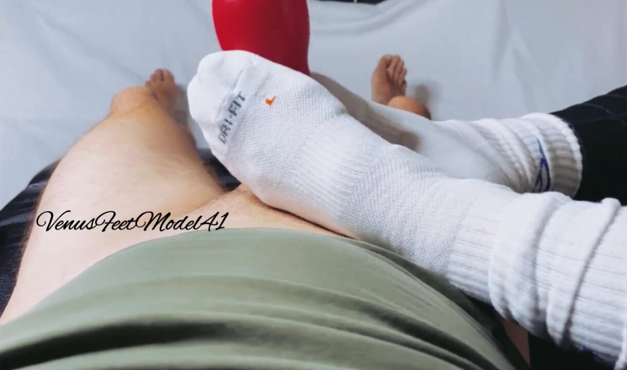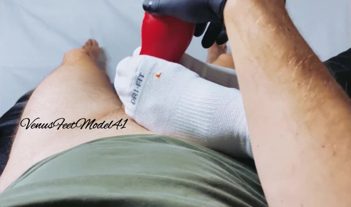 Post workout I Finished my husband with a feetjob after I caught him masturbating with a fleshlight.