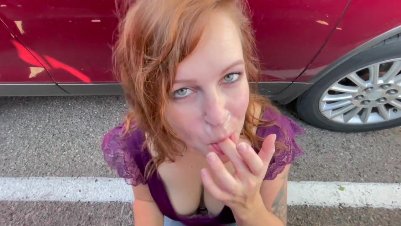 Redhead Blowjob in a parking lot, watch me play with his cum!