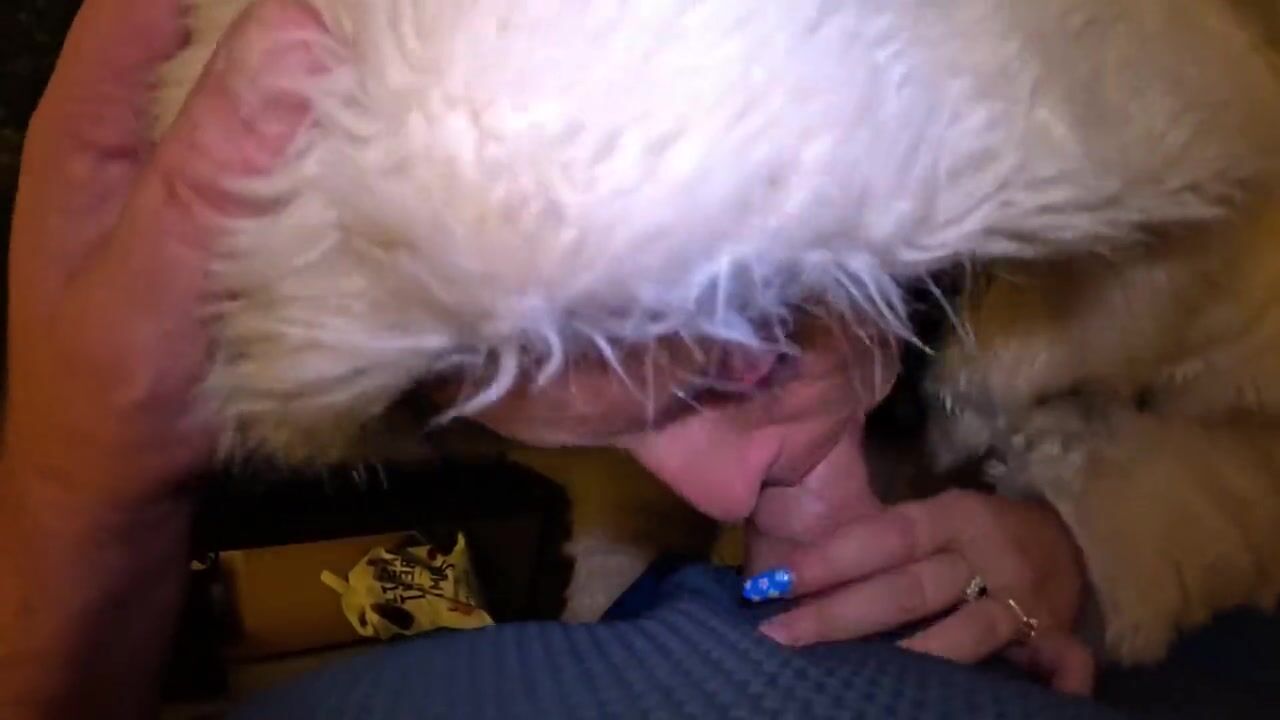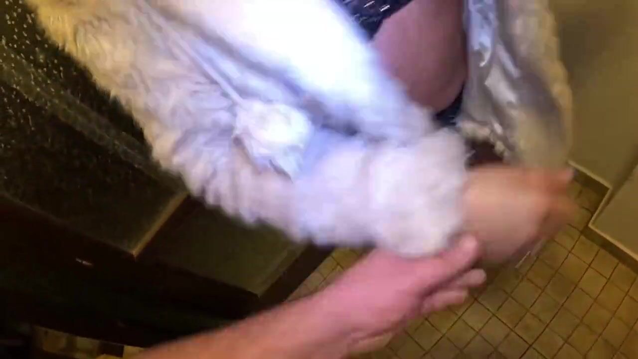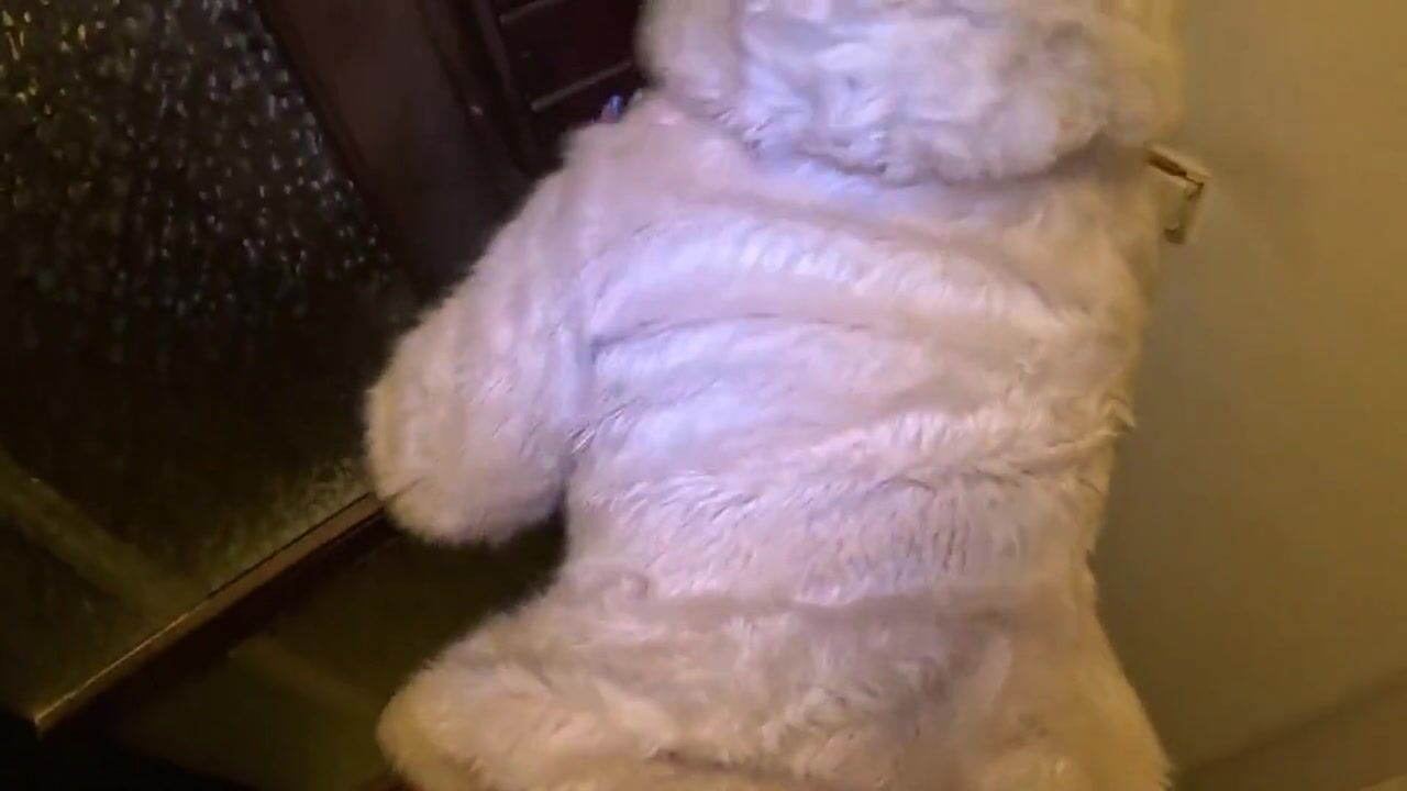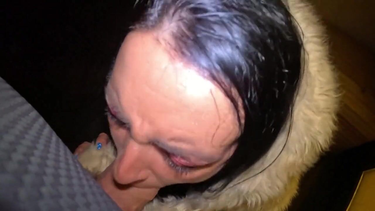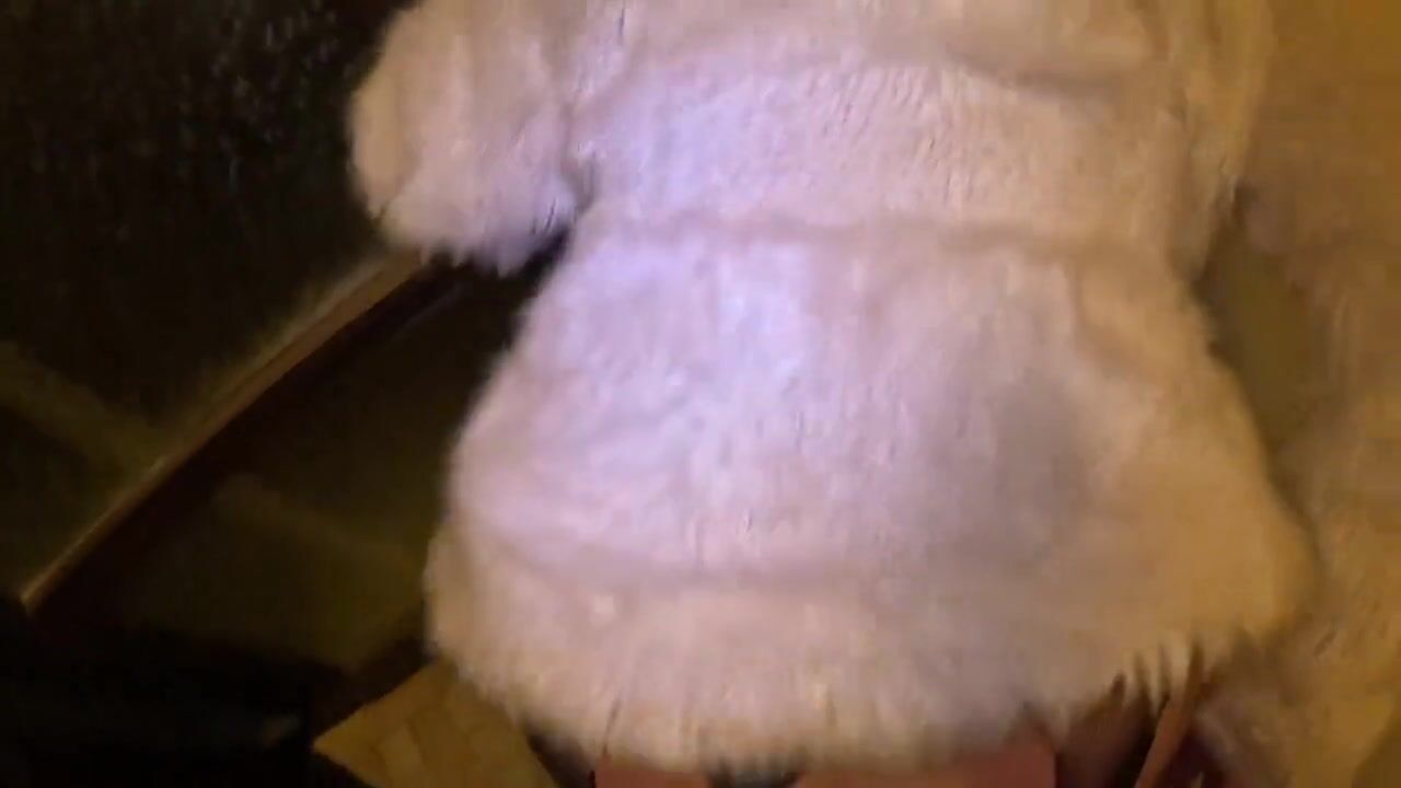 Risky Outdoor & Indoor Blowjob in Stockings & White Fur Coat - Messy Cum Finish 297